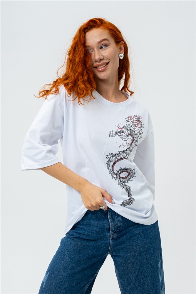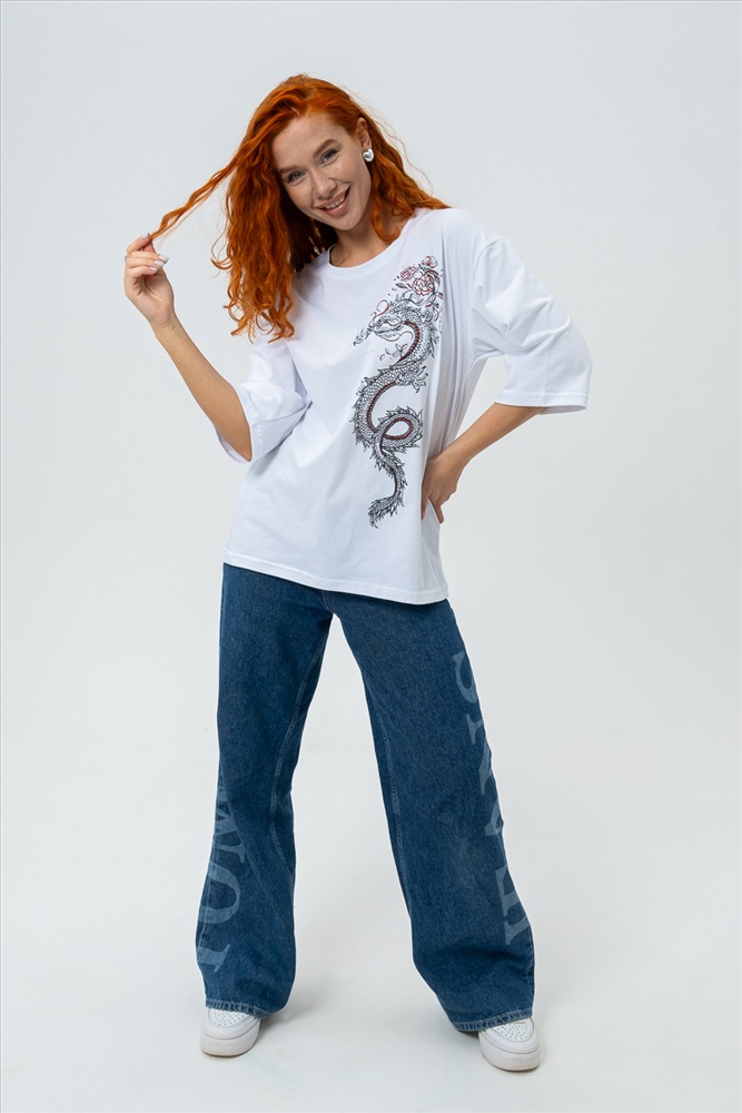 Состав: Хлопок 100%. Модель: Футболка 21610 Тип товара: футболка Материал: кулирка | кулирка Бренд: Натали Суслова Отделка: с печатью Рисунок: хищники | зверюшки Рукав: короткий рукав | рукав 3/4 Сезонность: лето | осень | весна | зима Силуэт: оверсайз | свободный Стиль: повседневный Женская футболка прямого свободного кроя, очень удобная, лёгкая и стильная. Длина рукава немного ниже локтя. Эффектно смотрится и подходит на каждый день. Изделие изготовлено из высококачественного хлопка пенье. Длина рукава указана в измерениях от точки основания шеи. Таблица размеров и веса
