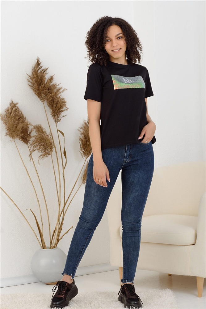 ID товара: 287828 Состав: Хлопок 95%, Лайкра 5% Сезон: Весна/Лето Длина: Средняя Фасон: Прямой Рукав: Длинный Вид застежки: Нет Вырез горловины: Круглый Рисунок: Надпись Тип карманов: Без карманов Декоративные элементы: Пайетки Основная ткань: Хлопок | Кулирка с лайкрой пенье, Кулирка с лайкрой пенье — стрейч-кулирка, выполненная из самых лучших и длинных нитей. В остальном идентичная кулирке с лайкрой. Особенности- эластичность, гипоаллергенность, гигроскопичность, возможна усадка при стирке. Стиль: Повседневный Страна бренда: Россия Страна производства: Россия Футболка женская с коротким рукавом и круглым воротом. Разрез на спинке придает оригинальность. Изделие выполнено из плотной высококачественной кулирки с лайкрой качества пенье в двух цветах. Современный принт с пайетками делает модель универсальной. Комментарии к товару