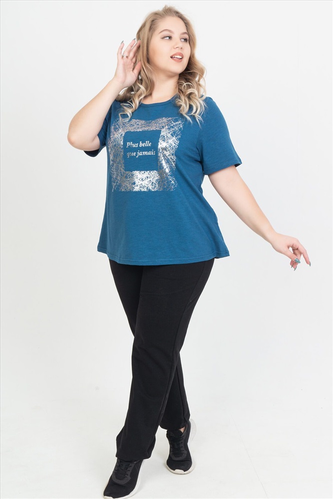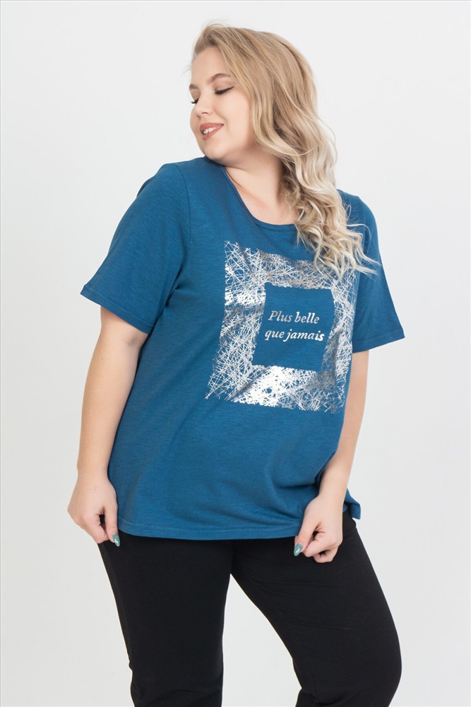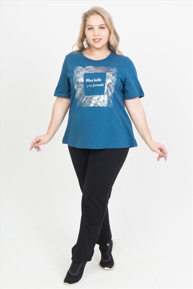 ID товара: 738221 Состав: Хлопок 100% Сезон: Весна/Лето Длина: Средняя Фасон: Свободный крой Рукав: Короткие Вырез горловины: Округлый Рисунок: Надпись Декоративные элементы: Печатный принт Основная ткань: Хлопок | Кулирка флам Стиль: Повседневный Страна бренда: Россия Страна производства: Россия Футболка женская больших размеров с круглым воротом и рукавами до локтя. Изделие выполнено из высококачественной кулирки фламли в двух цветах. Модная, приятная к телу футболка с современным принтом подойдет на любой случай. Комментарии к товару