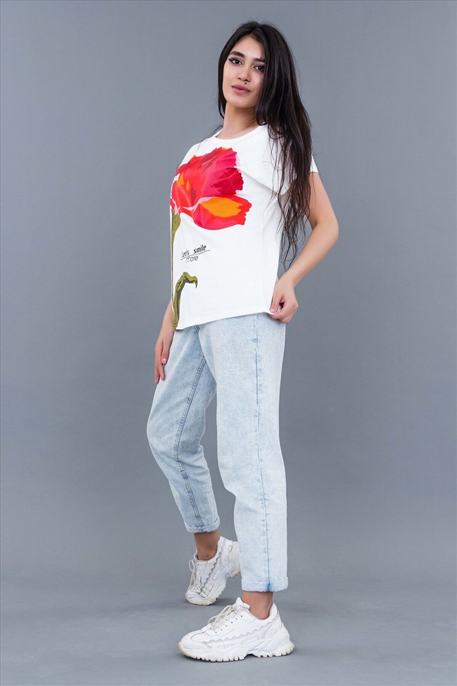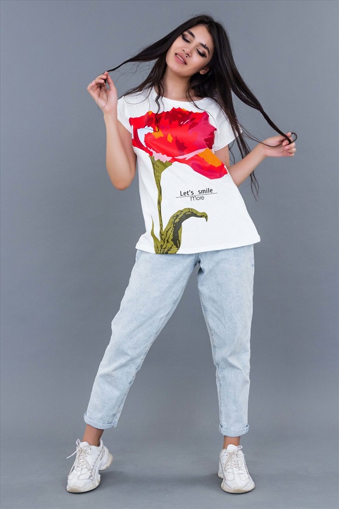 ID товара: 769774 Состав: Хлопок 100% Сезон: Весна/Лето Длина: Средняя Фасон: Прямой Рукав: Короткий Вид застежки: Без застежки Вырез горловины: Округлый Рисунок: цветочный Декоративные элементы: Принт Основная ткань: 100% хлопок | Кулирка Стиль: Повседневный Страна бренда: Россия Страна производства: Россия Футболка женская с коротким рукавом и круглым воротом. Изделие выполнено из 100% хлопка в трех цветах. Оригинальный принт подчеркнет индивидуальность и позволит создать трендовый образ для ежедневного лука. Комментарии к товару