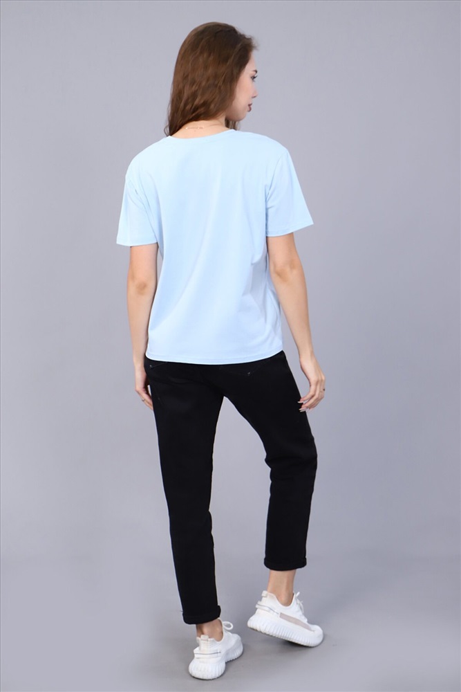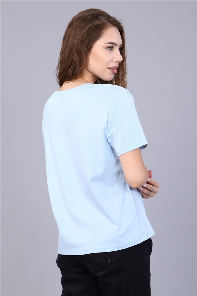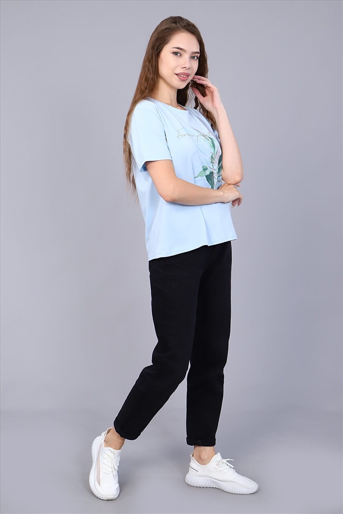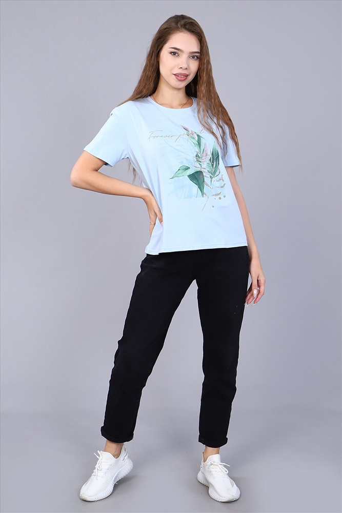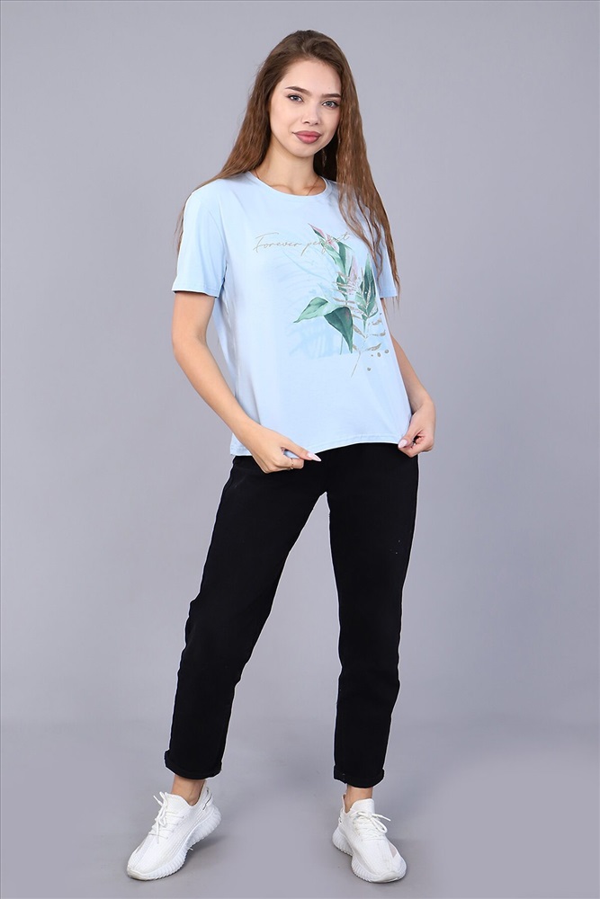 Страна производства: Россия Футболка женская выполнена из высококачественной кулирки с лайкрой в светло-голубом цвете. Изделие свободного кроя с коротким рукавом и округлым вырезом горловины. Нежный принт придает изделию женственность и индивидуальность. Модель для любого случая.