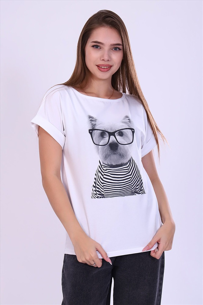 ID товара: 875454 Состав: Хлопок 95%, Лайкра 5% Сезон: Весна/Лето Длина: Средняя Фасон: Прямой Рукав: короткие Вырез горловины: Округлый Рисунок: Животные Декоративные элементы: Печатный принт Основная ткань: Кулирка с лайкрой Стиль: повседневный Страна бренда: Россия Страна производства: Россия Футболка женская с коротким спущенным рукавом и круглым воротом. Изделие из плотной высококачественной кулирки с лайкрой качества пенье. Приятная к телу футболка с современным принтом подойдет на любой случай. Комментарии к товару