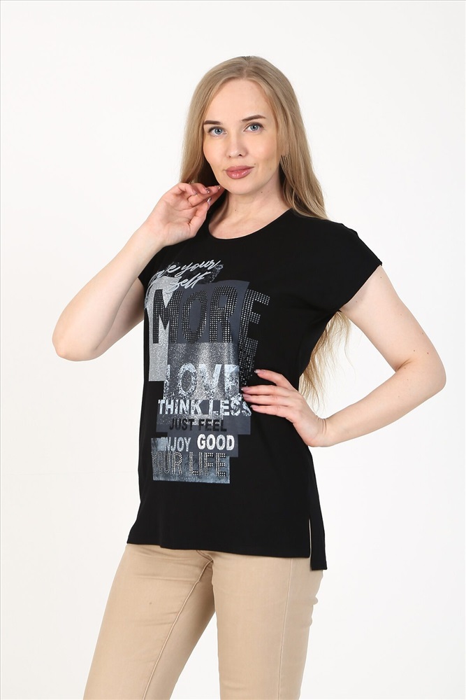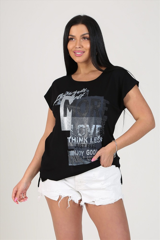 ID товара: 768188 Состав: 92% вискоза, 8% лайкра Сезон: Весна/Лето Длина: Средняя Фасон: Прямой Рукав: Короткий Вид застежки: Без застежки Вырез горловины: Округлый Рисунок: Надпись Декоративные элементы: Принт Основная ткань: Вискоза | Вискоза Стиль: Повседневный Страна бренда: Россия Страна производства: Россия Модель свободного силуэта длиной до линии бёдер, со спущенной проймой. На передней части изделия нанесена стильная современная печать, боковой шов переходит в небольшой разрез, низ спереди чуть короче, чем спинка. Футболка изготовлена из приятной и комфортной вискозы, сочетается с любой одеждой. Комментарии к товару