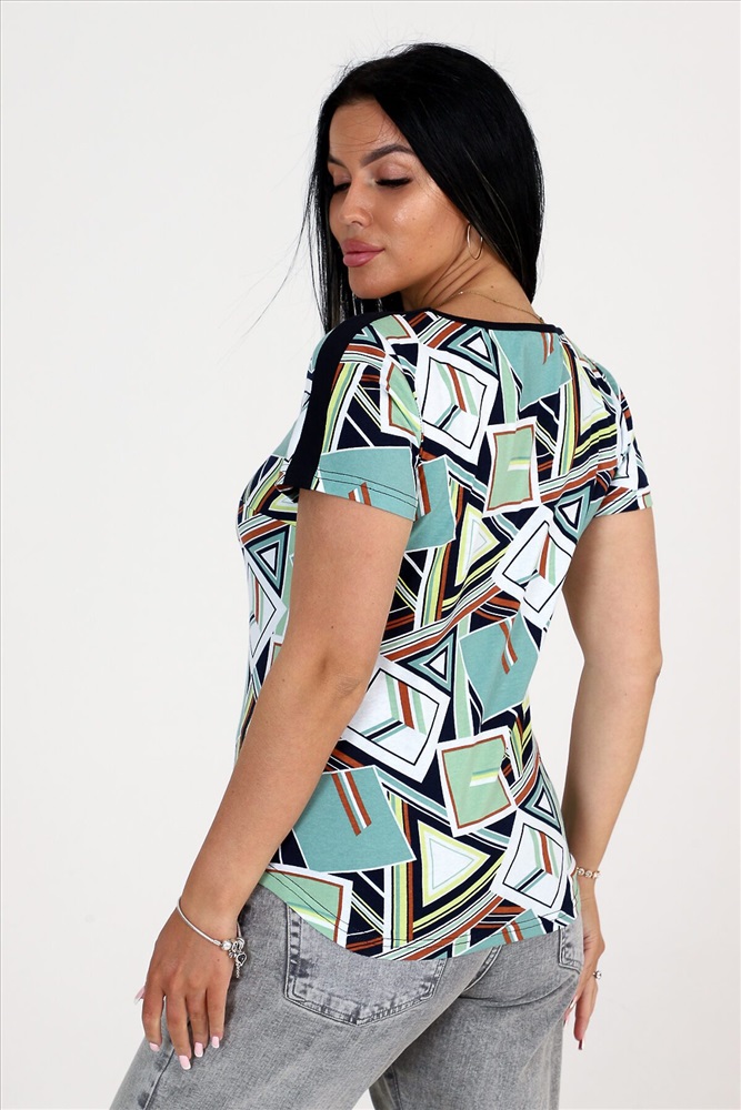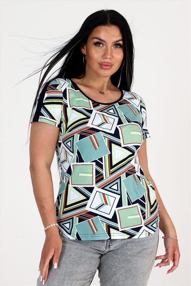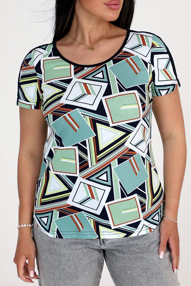 ID товара: 865308 Состав: Хлопок 100% Сезон: Весна/Лето Длина: Средняя Фасон: Прямой Рукав: Короткие Вырез горловины: Округлый Рисунок: Абстракция Основная ткань: Хлопок | Кулирка Стиль: Повседневный Страна бренда: Россия Страна производства: Россия Футболка женская из кулирки. Футболка полуприлегающего силуэта. Рукав втачной с отделочной деталью по рукаву и плечу. Горловина окантована отделочной тканью. Комментарии к товару