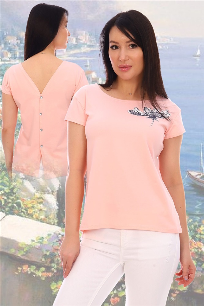 ID товара: 283305 Состав: Хлопок 94%, Лайкра 6% Сезон: Весна/Лето Длина: Средняя Фасон: Прямой Рукав: Короткий Вид застежки: Нет Вырез горловины: Круглый Рисунок: цветочный Тип карманов: Без карманов Декоративные элементы: Пуговицы Основная ткань: Хлопок | Кулирка с лайкрой пенье, Кулирка с лайкрой пенье — стрейч-кулирка, выполненная из самых лучших и длинных нитей. В остальном идентичная кулирке с лайкрой. Особенности- эластичность, гипоаллергенность, гигроскопичность, возможна усадка при стирке. Стиль: Повседневный Страна бренда: Россия Страна производства: Россия Футболка молодёжная с мерцающим принтом на груди, из эластичного, высококачественного, приятного к телу трикотажа. Горловина круглая, короткий рукав, слегка расклешенная к низу. Имитация распашной спинки украшена декоративными пуговицами, что придаёт футболке некую изюминку. Модель интересная, универсальная, её можно носить с брюками или джинсами, а также с юбкой. Подойдёт как для работы в офисе, так и для повседневного гардероба. Комментарии к товару