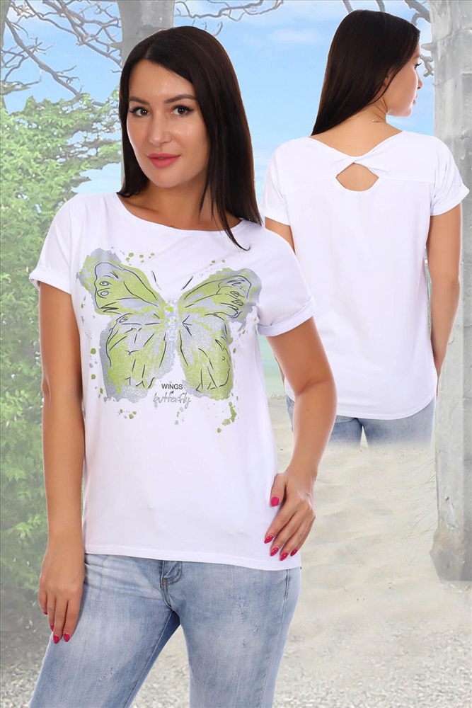 ID товара: 283307 Состав: Хлопок 95%, Лайкра 5% Сезон: Весна/Лето Длина: Средняя Фасон: Прямой Рукав: Короткий Вырез горловины: Круглый Рисунок: бабочки Тип карманов: Без карманов Декоративные элементы: Печатный принт Основная ткань: Хлопок | Кулирка с лайкрой пенье, Кулирка с лайкрой пенье — стрейч-кулирка, выполненная из самых лучших и длинных нитей. В остальном идентичная кулирке с лайкрой. Особенности- эластичность, гипоаллергенность, гигроскопичность, возможна усадка при стирке. Стиль: Повседневный Страна бренда: Россия Страна производства: Россия Футболка женская с мерцающим принтом из мягкого, эластичного трикотажа качества ПЕНЬЕ. Спущенная пройма обработана манжетом с отворотом. На спинке кокетка с драпировкой в виде "узла" с необработанными краями и вырезом в виде "улыбки", низ спинки слегка удлинён. Модель интересная, свободного покроя, подойдёт на любую фигуру. Комментарии к товару