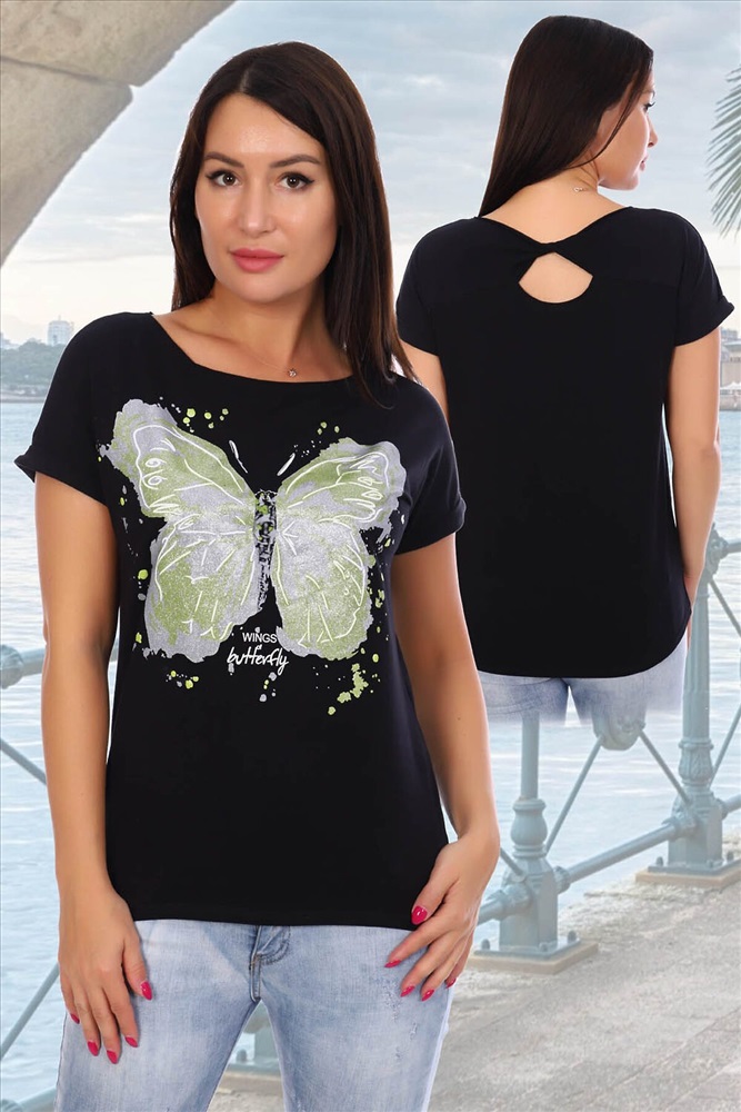 ID товара: 283308 Состав: Хлопок 95%, Лайкра 5% Сезон: Весна/Лето Длина: Средняя Фасон: Прямой Рукав: Короткий Вид застежки: Нет Вырез горловины: Круглый Рисунок: бабочки Тип карманов: Без карманов Декоративные элементы: Печатный принт Основная ткань: Хлопок | Кулирка с лайкрой пенье, Кулирка с лайкрой пенье — стрейч-кулирка, выполненная из самых лучших и длинных нитей. В остальном идентичная кулирке с лайкрой. Особенности- эластичность, гипоаллергенность, гигроскопичность, возможна усадка при стирке. Стиль: Повседневный Страна бренда: Россия Страна производства: Россия Футболка женская с мерцающим принтом из мягкого, эластичного трикотажа качества ПЕНЬЕ. Спущенная пройма обработана манжетом с отворотом. На спинке кокетка с драпировкой в виде "узла" с необработанными краями и вырезом в виде "улыбки", низ спинки слегка удлинён. Модель интересная, свободного покроя, подойдёт на любую фигуру. Комментарии к товару