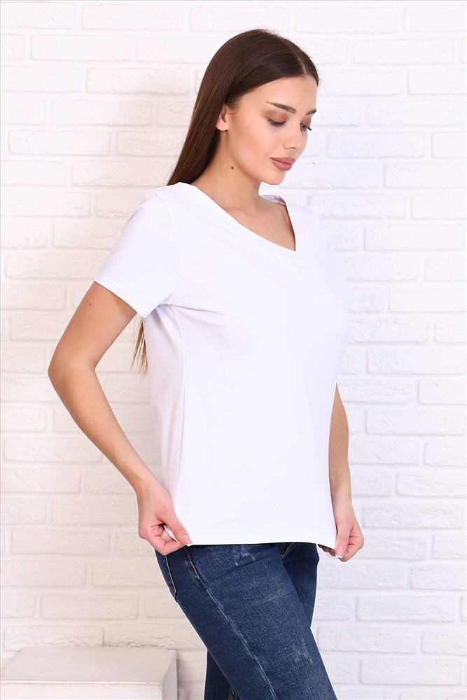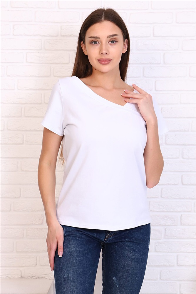 Стильная футболка из кулирки с лайкрой качества пенье, мягкая, приятная к телу. Модель свободного кроя, втачной короткий рукав, фигурный вырез горловины придаёт изделию особенную изюминку. Футболка - это базовая комфортная вещь женского гардероба, очень практичная и удобная, не сковывает движения, позволяет женщине всегда оставаться уникальной.