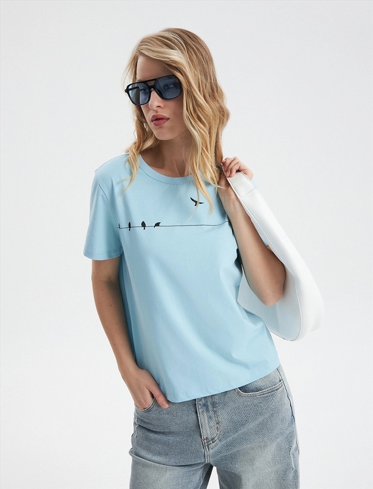 Базовая футболка регулярного силуэта с принтом по передней части изделия