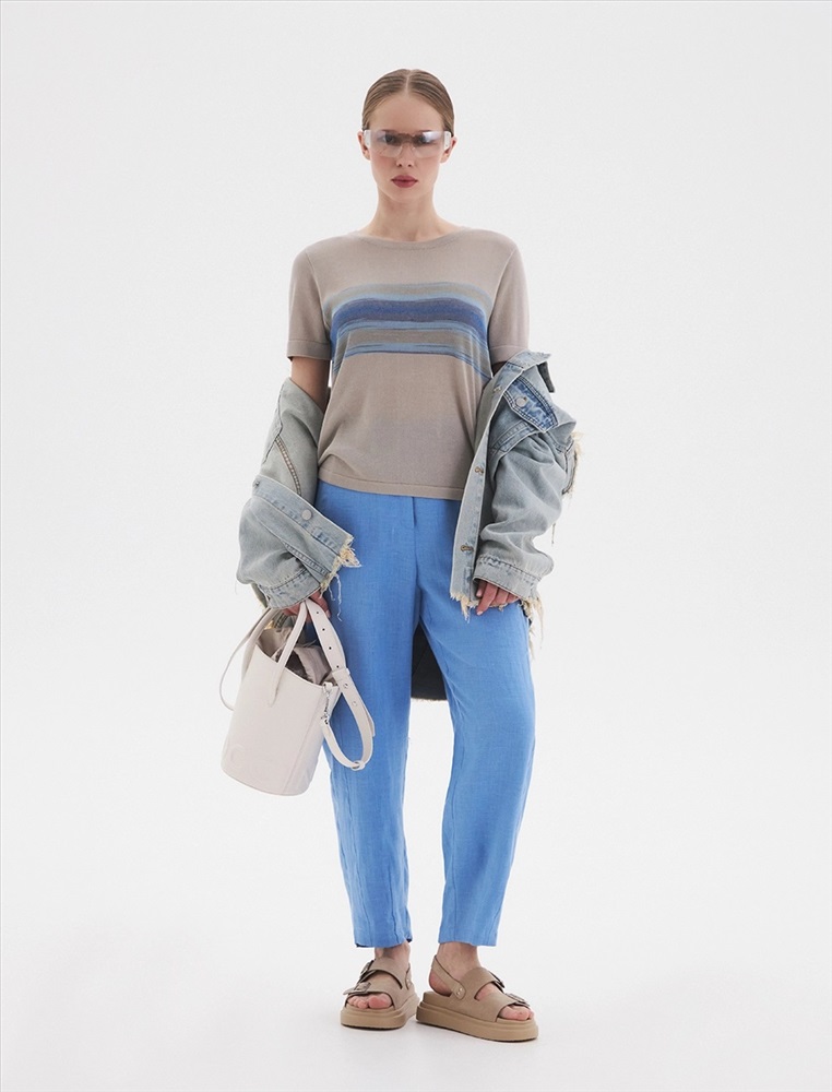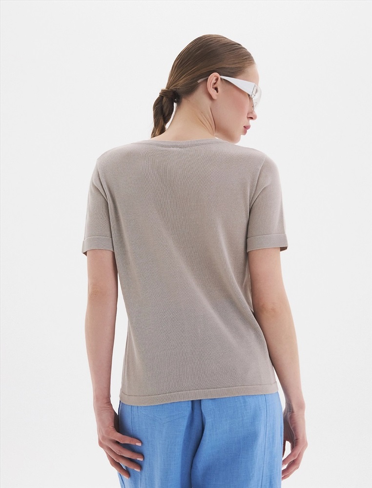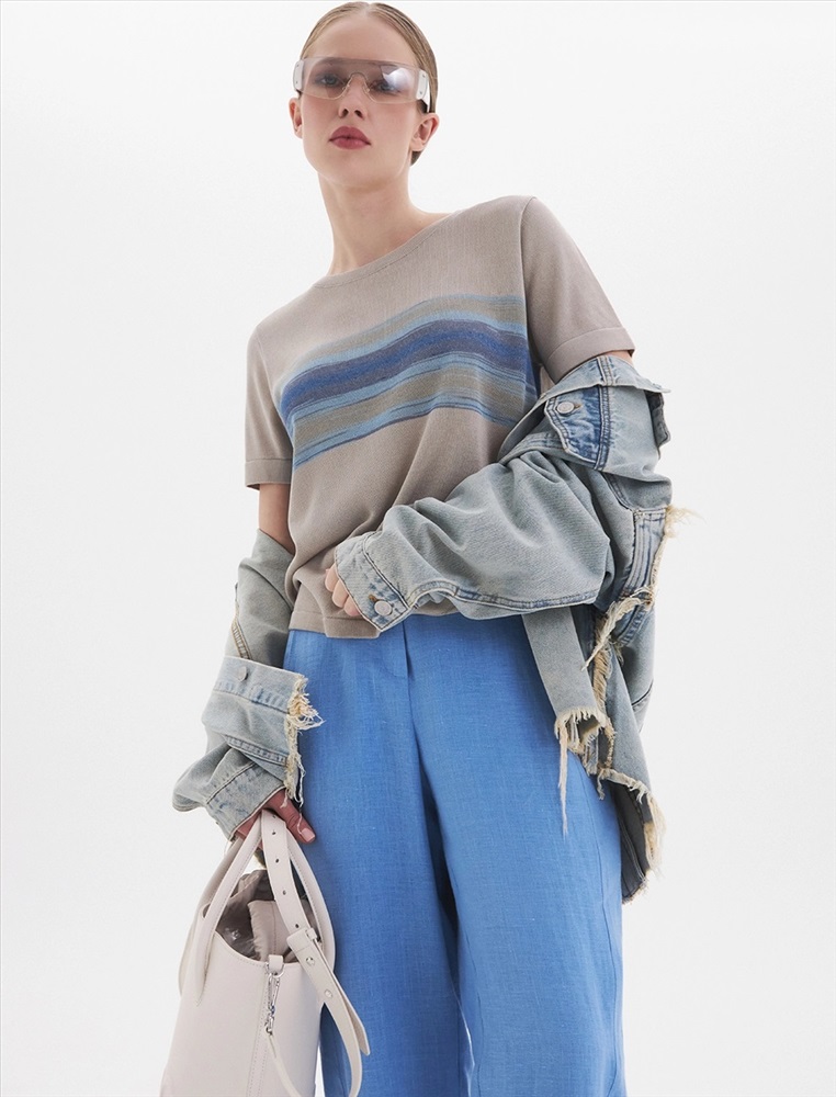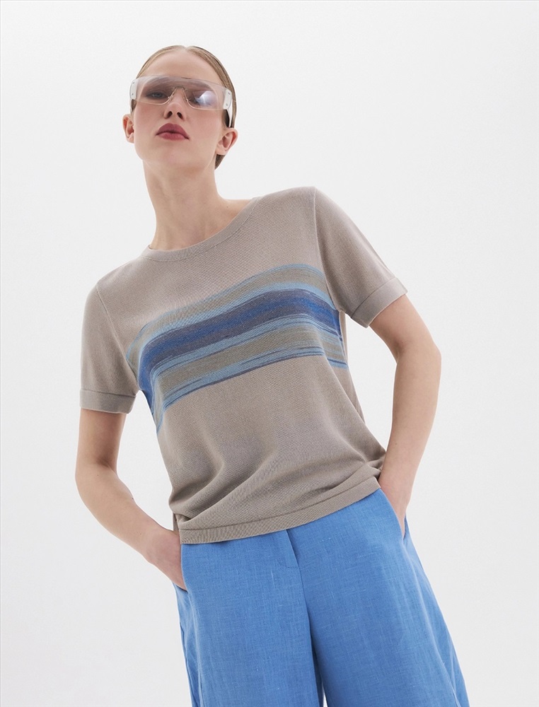 Футболка регулярного силуэта с втачным рукавом и круглой горловиной. По передней части изделия акцентный принт с градиентом.