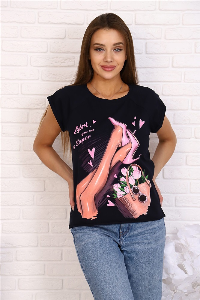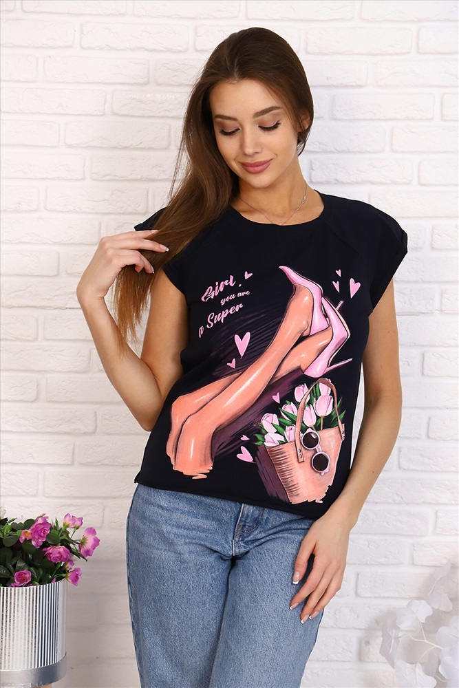 ID товара: 615276 Состав: 92% Хлопок, 8% Лайкра Сезон: Весна/Лето Длина: Средняя Фасон: Прямой Рукав: Короткий Вырез горловины: Круглый Рисунок: Фантазийный Основная ткань: Хлопок | Кулирка с лайкрой пенье Стиль: Повседневный Страна бренда: Россия Страна производства: Россия Футболка женская с коротким рукавом-реглан. На детали переда печать, края футболки не обработаны Комментарии к товару