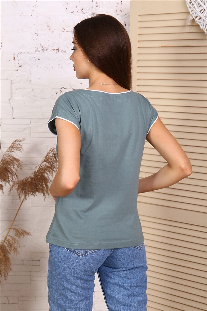 ID товара: 660150 Состав: 100% Хлопок Сезон: Весна/Лето Длина: Средняя Фасон: Прямой Рукав: Короткий Вырез горловины: Круглый Основная ткань: Хлопок | Кулирка Стиль: Повседневный Страна бренда: Россия Страна производства: Россия Футболка женская слегка свободного покроя с короткими спущенными рукавами. Горловина в форме лодочки, обработана отделочным кантом. На полочке выполнена печать. Такая модель идеально подходит на каждый день, делает образ модным и стильным. Комментарии к товару