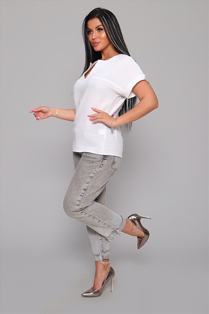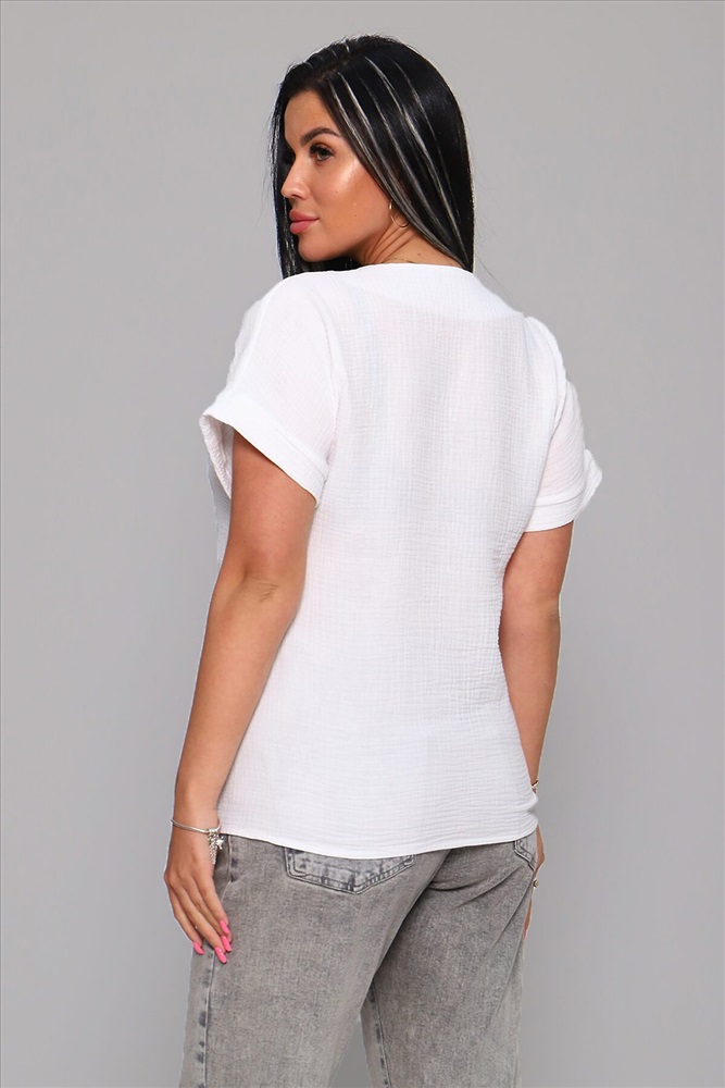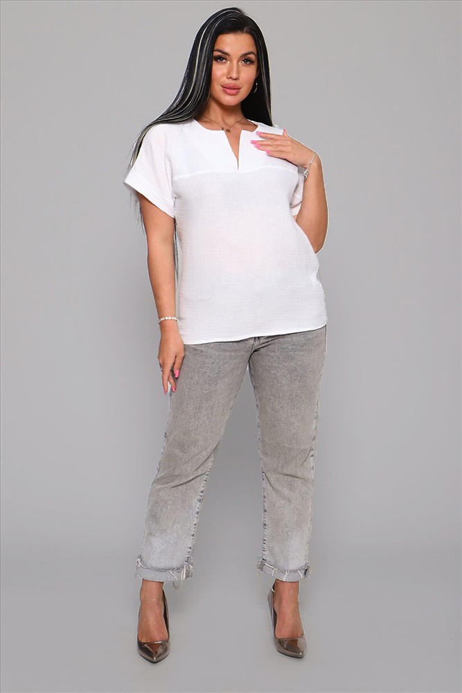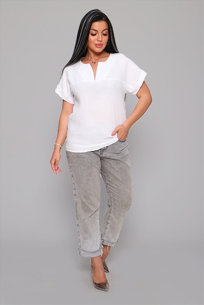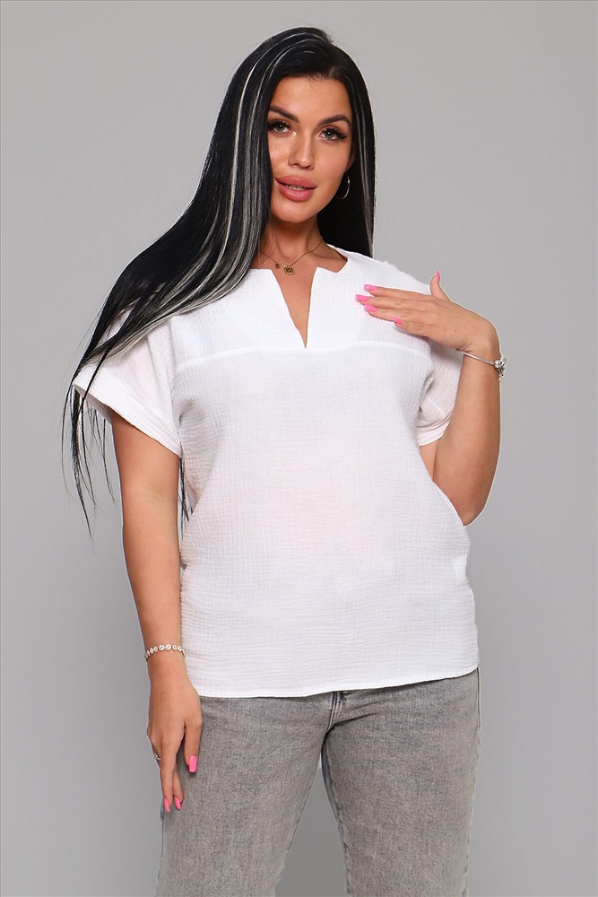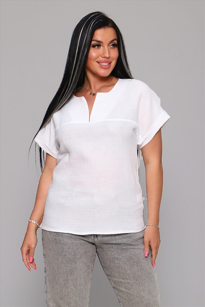 Страна производства: Россия Легкая удобная футболка из муслина. Стопроцентный хлопок в составе ткани делает изделие незаменимым в летнюю жару и на работе, и на отдыхе. Спущенный рукав с небольшим манжетом обеспечивает свободу движения, округлая горловина с V-образным вырезом добавляет женственности образу. Длина футболки до линии бедра.
