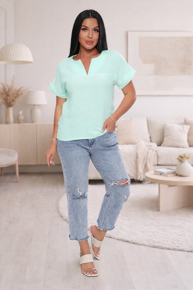 Состав: 100% хлопок Модель: Футболка 32743 Тип товара: футболка Материал: муслин | муслин Бренд: Натали Суслова Карман: без карманов Рисунок: однотонные Рукав: короткий рукав Сезонность: лето | осень | весна | зима Силуэт: свободный Стиль: нарядный | офисный | повседневный Воротник: без воротника Застежка: без застежки Удобная и практичная футболка из муслина - настоящая находка для тех, кто хочет выглядеть элегантно в любое время года. Муслин, состоящий из 100% хлопка, обеспечивает комфорт и свежесть, позволяет коже дышать в любую погоду. Свободный крой футболки подчеркивает фигуру, обеспечивает свободу движения. Спущенный рукав с небольшим манжетом придает законченность образу, V-образный вырез горловины подчеркнет вашу женственность и удлинит шею. Футболка из муслина проста в уходе, быстро сохнет, не требует глажки. В ней вы будете чувствовать себя уверенно и комфортно и на работе, и на отдыхе. Носите ее самостоятельно и с пиджаком - она гармонично дополнит и деловой костюм , и летний наряд. Таблица размеров и веса