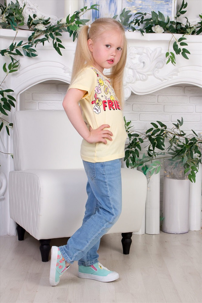 ID товара: 790561 Состав: 100% Хлопок Сезон: Весна/Лето Длина: Средняя Фасон: Прямой Рукав: Короткие Вырез горловины: Округлый Рисунок: Надпись Декоративные элементы: Печатный принт Основная ткань: Хлопок Стиль: Повседневный Страна бренда: Россия Страна производства: Россия Детская футболка из 100% хлопка с коротким рукавом и круглым вырезом горловины. Комментарии к товару