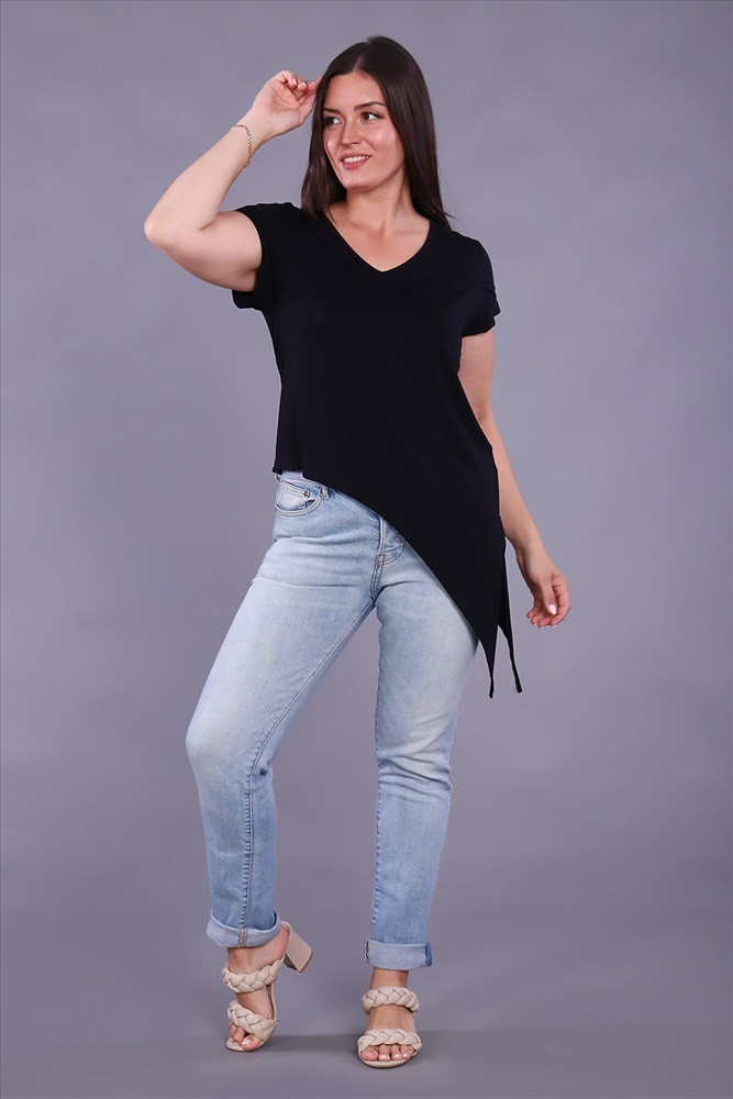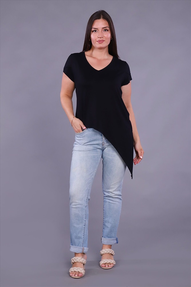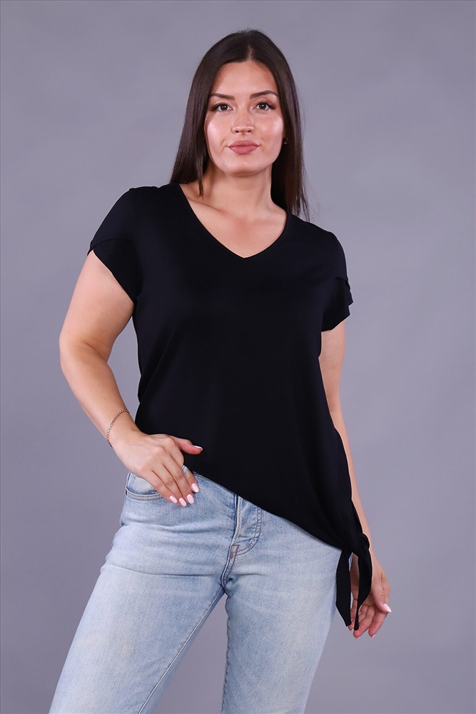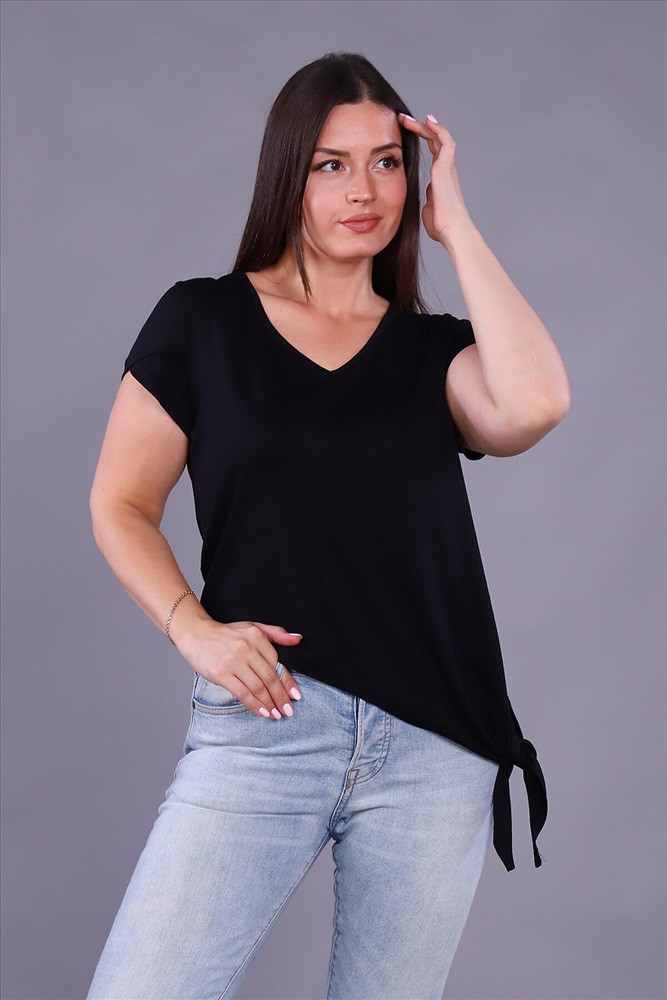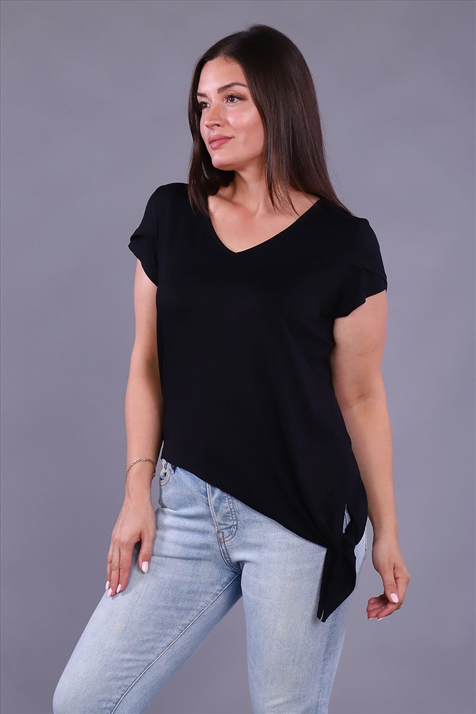 ID товара: 799959 Состав: Вискоза 92%, Лайкра 8% Сезон: Весна/Лето Длина: Удлиненная Фасон: Полуприлегающий Рукав: Короткие Вырез горловины: V-образный Декоративные элементы: Завязки Основная ткань: Вискоза Стиль: Повседневный Страна бренда: Россия Страна производства: Россия Женская футболка выполнена из приятного к телу вискозного полотна. Красивый V - образный вырез горловины, рукав с двойным крылышком и неровный низ изделия, переходящий в завязывающийся узел, идеально смотрится на любой фигуре. Современная футболка - это почти неотъемлемая часть гардероба любой женщины, в которой собраны все её неоспоримые достоинства - универсальность, удобство, красота и многовариантность. Комментарии к товару