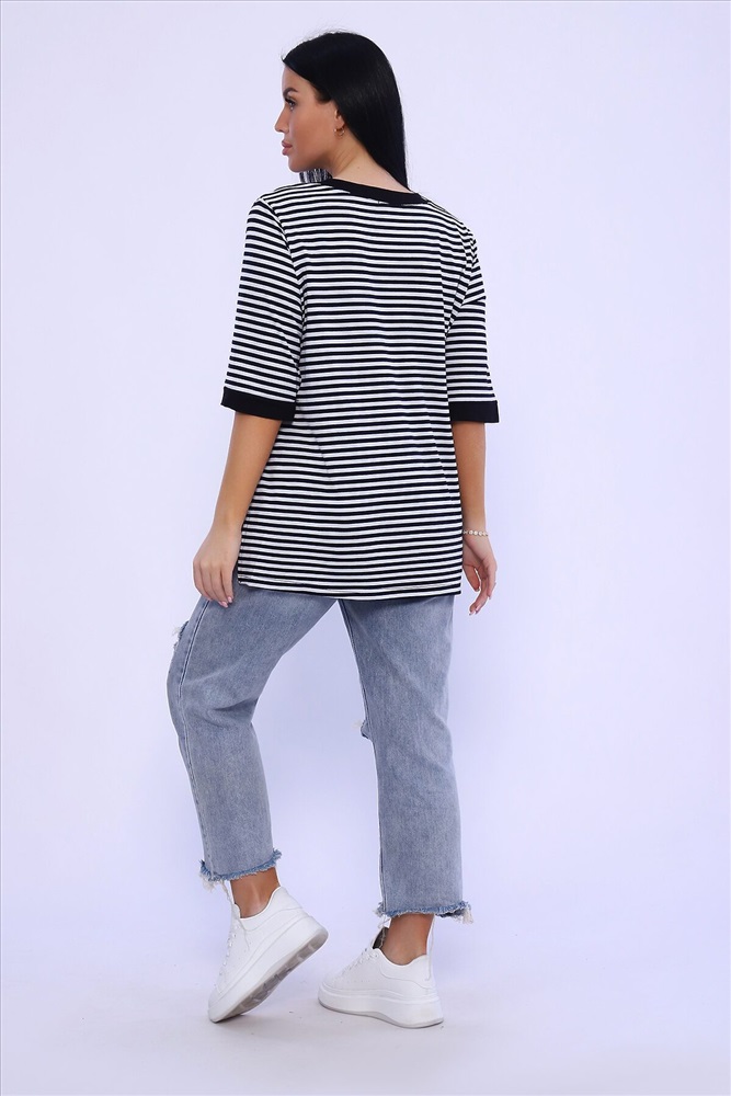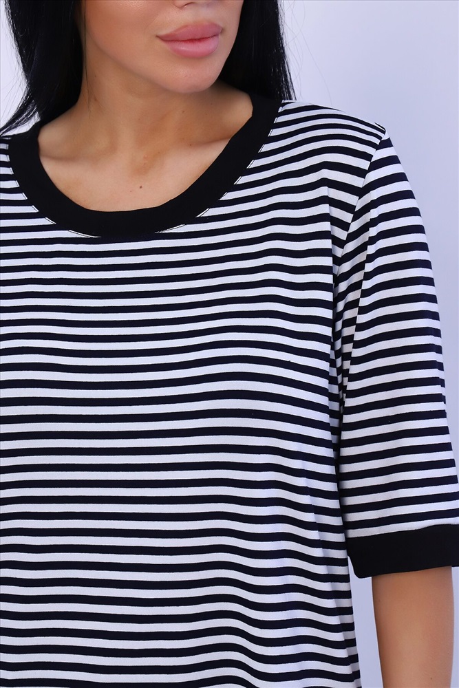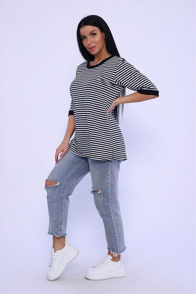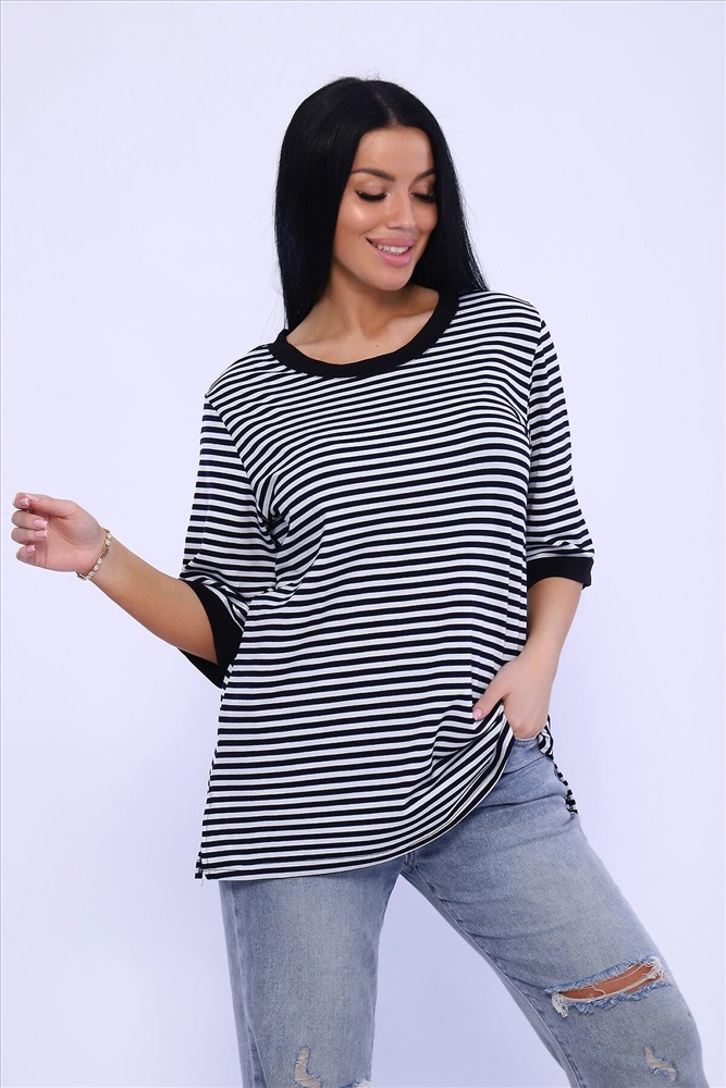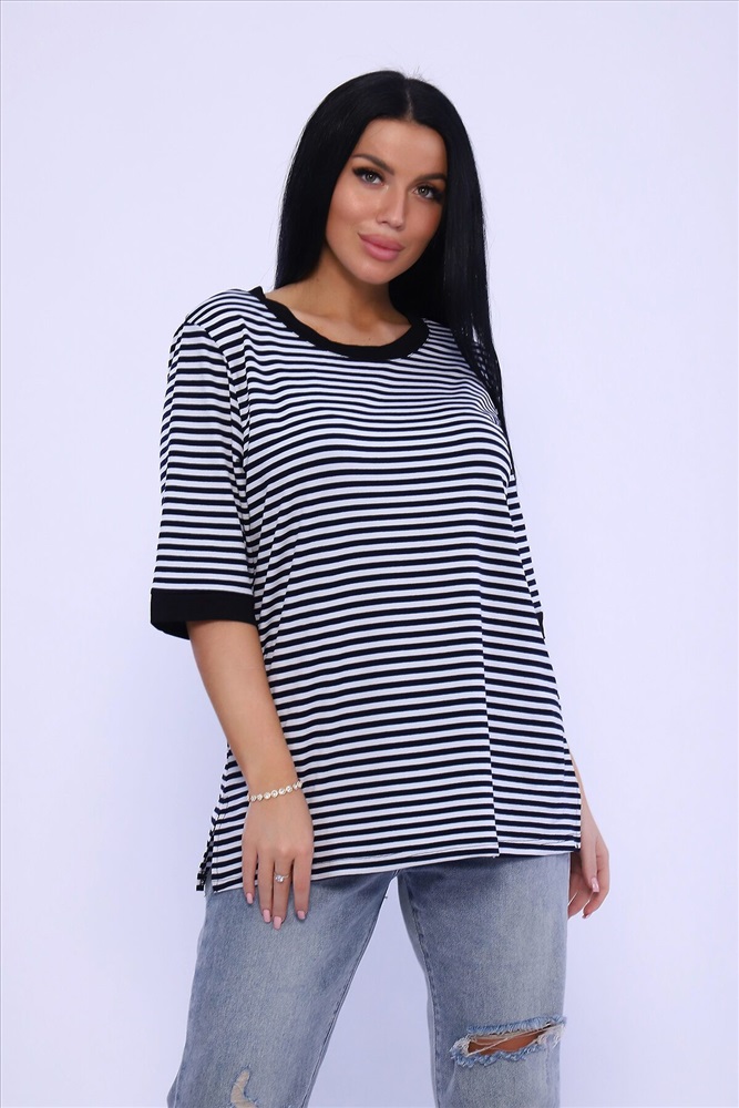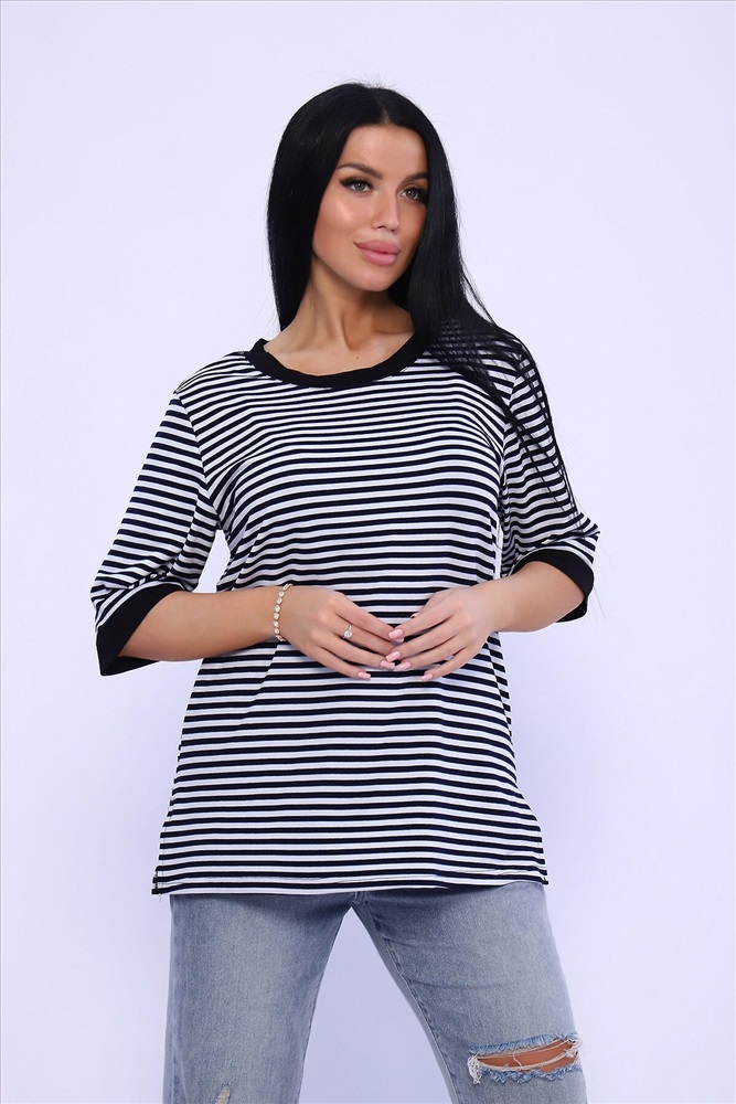 ID товара: 978689 Состав: 95% Вискоза, 5% Лайкра Сезон: Весна/Лето Длина: Средняя Фасон: Прямой Рукав: Короткие Вырез горловины: Округлый Рисунок: Полоски Декоративные элементы: Принт Основная ткань: Хлопок Стиль: повседневный Вид ткани: Вискоза Страна бренда: Россия Страна производства: Россия Футболка в полоску с рукавом 3/4 - это прекрасный выбор для вас. Большой размерный ряд! Футболка выполнена из приятной к телу вискозы, что обеспечивает комфорт на протяжении всего дня. Эта футболка женская идеально подходит как для повседневной носки, так и для офиса. Вы можете сочетать ее с джинсами, шортами или даже с кроссовками для прогулок. Комментарии к товару