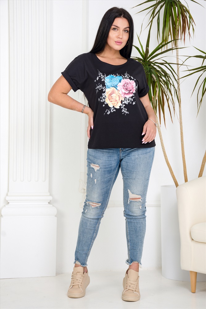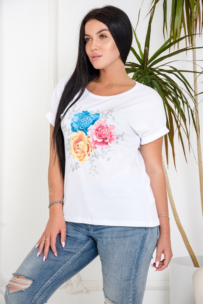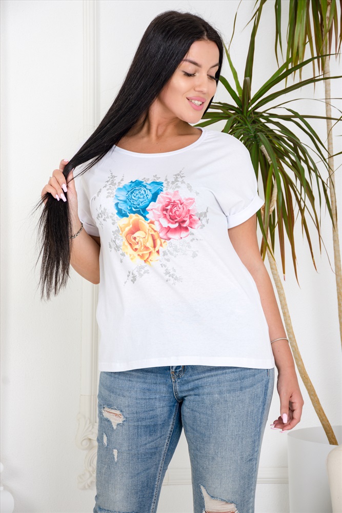 Состав: 100% хлопок Модель: Футболка 4434 Тип товара: футболка Материал: кулирка | кулирка Бренд: Натали Суслова Длина: средняя длина Отделка: с манжетами | с печатью Рисунок: крупный принт | цветы Рукав: короткий рукав Сезонность: лето | осень | весна | зима Силуэт: свободный Скидка: любая | от 10% и больше Стиль: пляжный | повседневный Футболка - незаменимый спутник женщин в летнее время. Состав - 100% хлопок. Свободный силуэт. Цельнокроенный рукав с манжетой. Принт в нежных тонах с листочками из искрящегося глиттера серебром. Прекрасно сочетается с джинсами и шортами, юбками и комбинезонами. Таблица размеров и веса