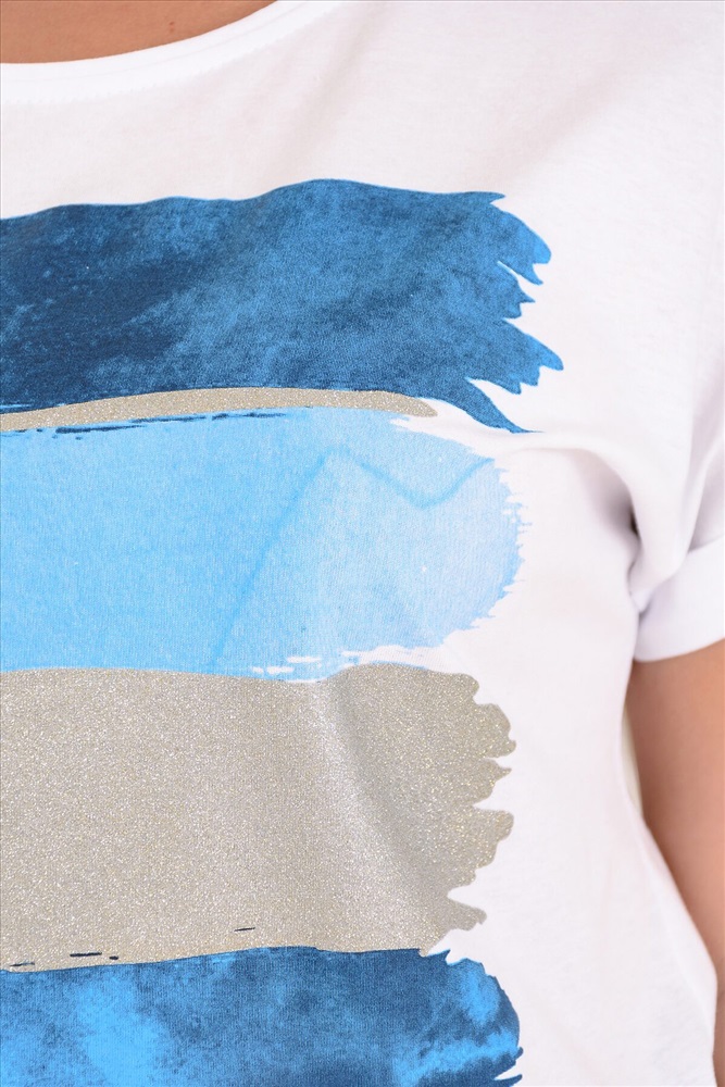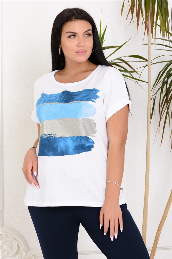 ID товара: 717764 Состав: 100% Хлопок Сезон: Весна/Лето Длина: Средняя Фасон: Прямой Рукав: Короткие Вид застежки: Без застежки Вырез горловины: Круглый Рисунок: Абстракция Декоративные элементы: Печатный принт Основная ткань: Хлопок | Кулирка Стиль: Повседневный Страна бренда: Россия Страна производства: Россия Футболка из мягкой, натуральной ткани с ярким принтом, добавлены переливающиеся на солнце полоски золота или серебра. Благодаря свободному крою безупречно садится по фигуре. Горловина обработана кантом, Свободный, цельнокроенный рукав с манжетой. С брюками 4435 составляет единый ансамбль. Комментарии к товару