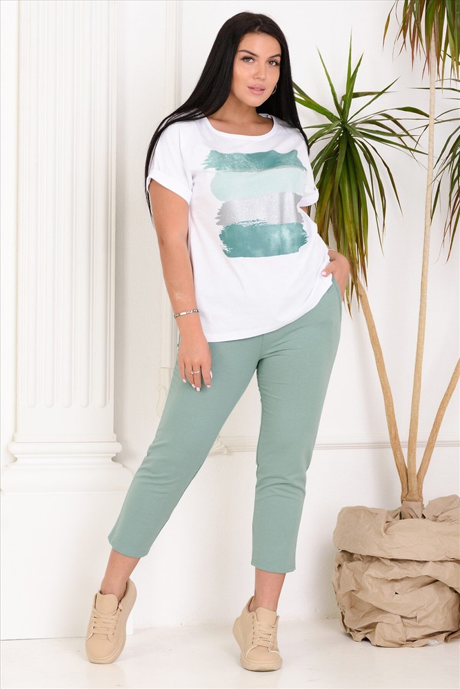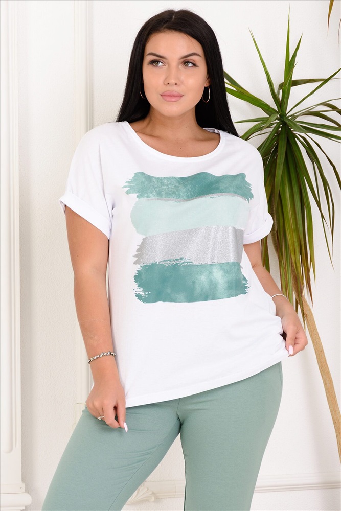ID товара: 717766 Состав: 100% Хлопок Сезон: Весна/Лето Длина: Средняя Фасон: Прямой Рукав: Короткие Вид застежки: Без застежки Вырез горловины: Круглый Рисунок: Абстракция Декоративные элементы: Печатный принт Основная ткань: Хлопок | Кулирка Стиль: Повседневный Страна бренда: Россия Страна производства: Россия Футболка из мягкой, натуральной ткани с ярким принтом, добавлены переливающиеся на солнце полоски золота или серебра. Благодаря свободному крою безупречно садится по фигуре. Горловина обработана кантом, Свободный, цельнокроенный рукав с манжетой. С брюками 4435 составляет единый ансамбль. Комментарии к товару