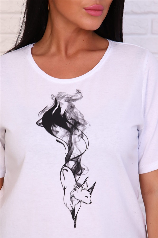 Футболка со светящимся принтом милого лисенка добавит настроения любой женщине, независимо от возраста. Классические цвета, простой, свободный крой, удлиненный рукав делает эту модель комфортной и приятной. Горловина обработана двойным кантом. Рукава и низ изделия подогнуты.
