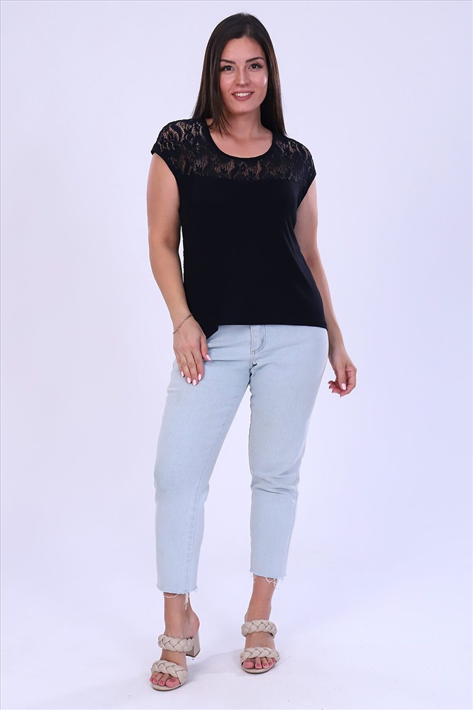 Страна производства: Россия Молодежная футболочка из вискозы в сочетании с кружевом. Кружевная спинка и верхняя часть полочки.