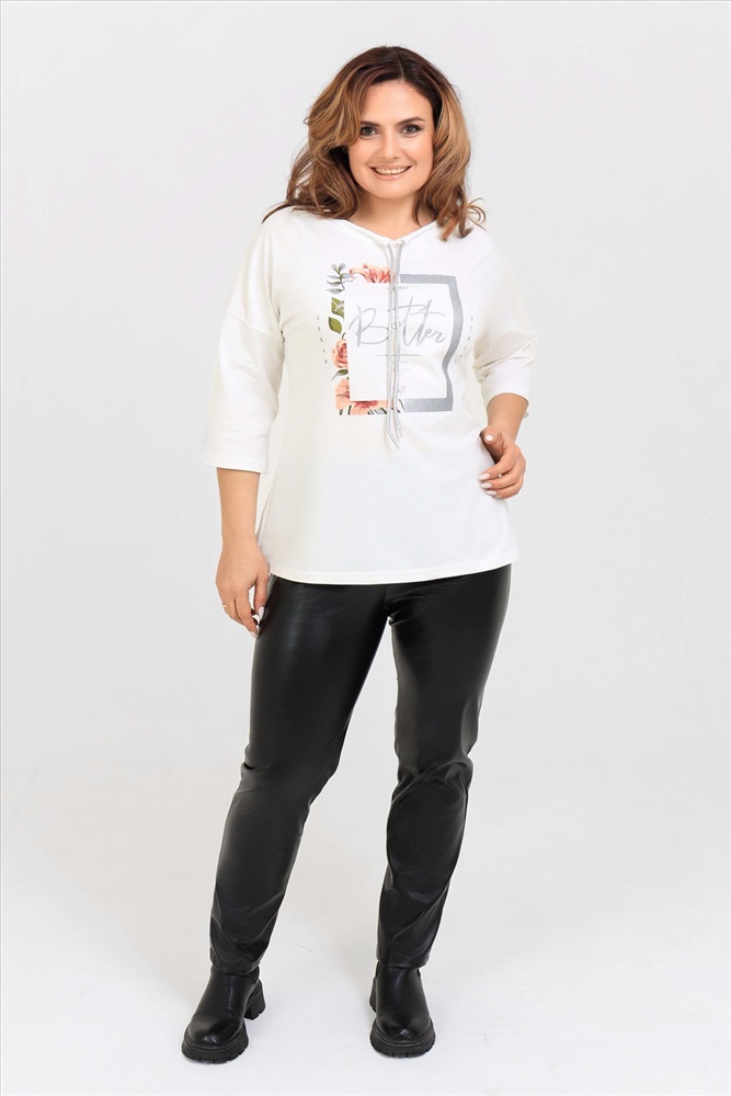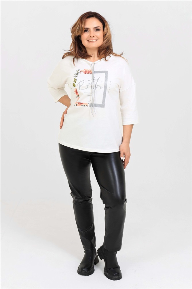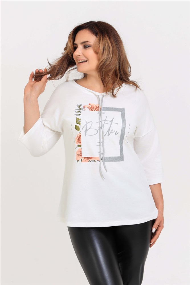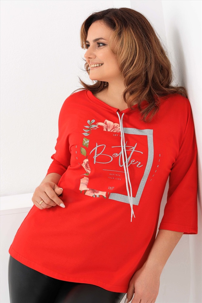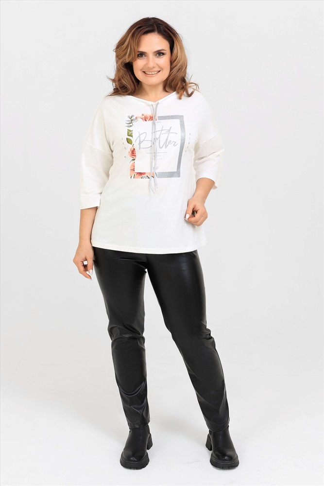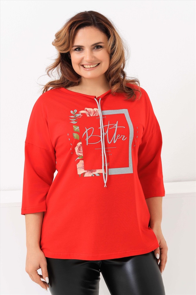 Стиль: повседневный Удлиненная женская футболка со шнурком, длиной до середины бедра с округлым вырезом горловины. Представленная в цветах - красный, фисташковый, лиловый, молочный и черном не утратят своей актуальности. Модели средней длины прекрасно смотрятся с брюками - дудочками или облегающими джинсами. В прохладную погоду хорошо будет смотреться в паре с утепленной жилеткой или курткой. Принт из блестящего глиттера прекрасно гармонирует с серебристым шнурком. Модель выполнена из хлопка высшего качества. Размер на модели 48. Параметры 105-86-98/169