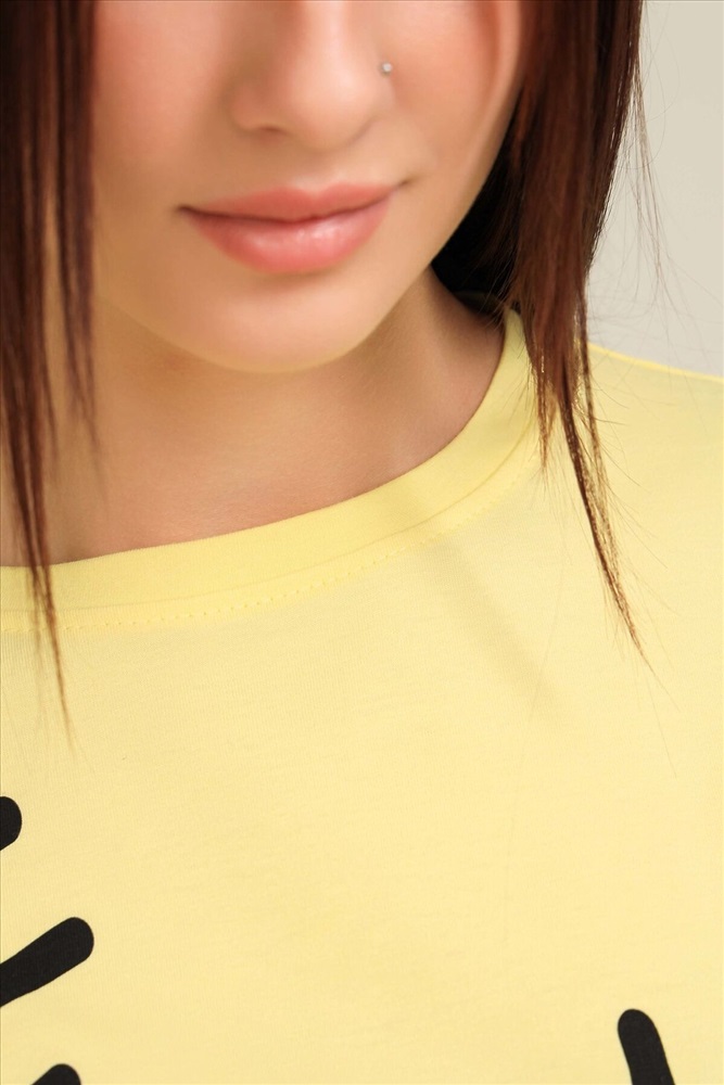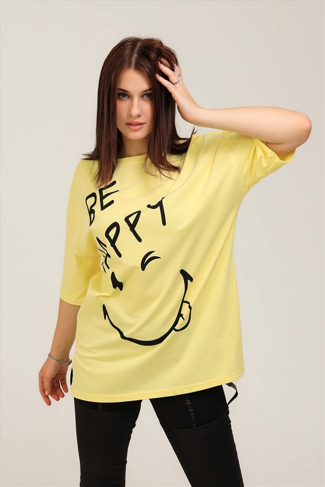 ID товара: 906414 Состав: 100% Хлопок Сезон: Весна/Лето Длина: Средняя Фасон: Прямой Вырез горловины: Округлый Рисунок: Надпись Основная ткань: Хлопок Стиль: Повседневный Вид ткани: Кулирка Страна бренда: Россия Страна производства: Россия Удлиненная женская футболка длинной до середины бедра представлена в 5 расцветках - яркие жёлтый, голубой и розовый цвета выделят Вас и прекрасно подчеркнет Вашу женственность, а базовые черный и, конечно же, белый цвета не утратят своей актуальности. Модели такой длины прекрасно смотрятся с брюками-дудочками, велосипедками или облегающими джинсами. В прохладную погоду хорошо будет смотреться в паре с утепленной жилеткой или курткой. На модели черного цвета нанесена печать глитером, который сверкает на солнце как алмазы, на остальных цветах печать в черном цвете, которая прекрасно контрастирует со светлыми тонами изделия. Модель выполнена из хлопка высшего качества плотность хлопка 170гр/м2. Это качество ткани люксовых изделий. Размер на модели - 48, Комментарии к товару