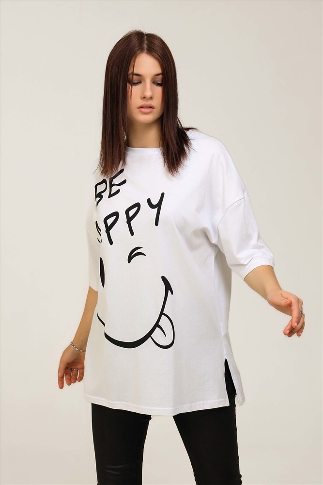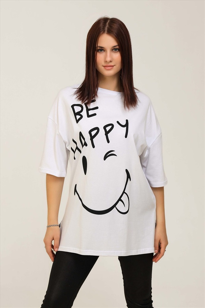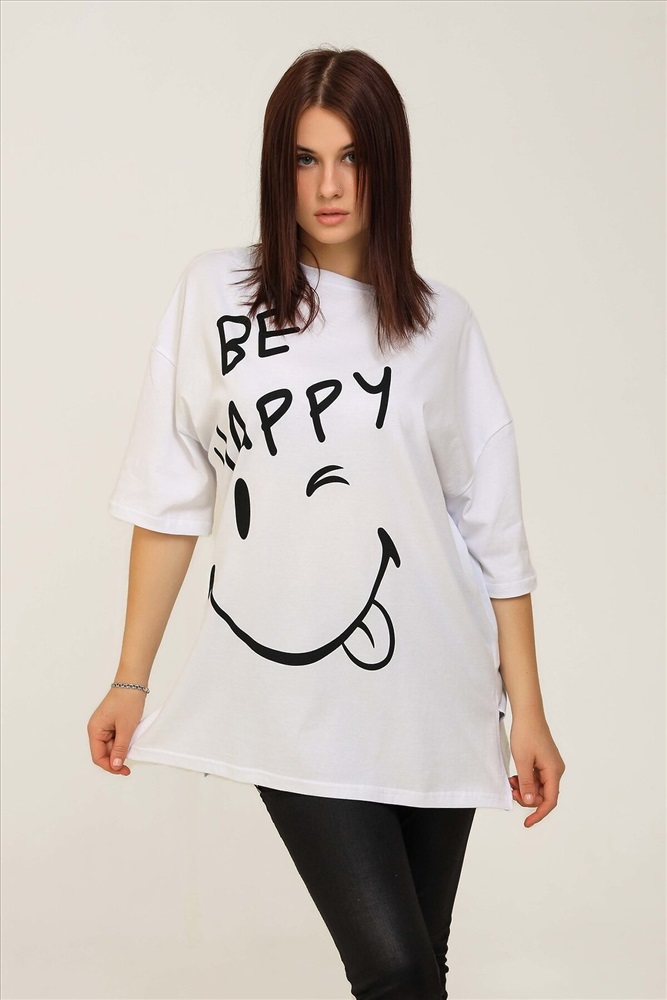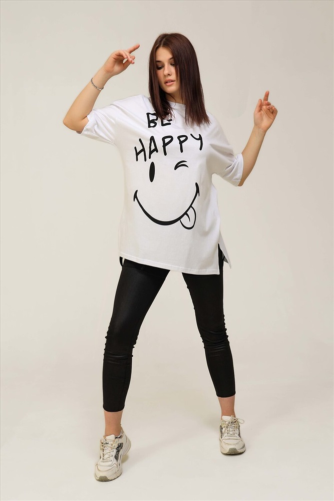 ID товара: 906415 Состав: 100% Хлопок Сезон: Весна/Лето Длина: Средняя Фасон: Прямой Рукав: 1/2 Вырез горловины: Округлый Рисунок: Надпись Основная ткань: Хлопок Стиль: Повседневный Вид ткани: Кулирка Страна бренда: Россия Страна производства: Россия Удлиненная женская футболка длинной до середины бедра представлена в 5 расцветках - яркие жёлтый, голубой и розовый цвета выделят Вас и прекрасно подчеркнет Вашу женственность, а базовые черный и, конечно же, белый цвета не утратят своей актуальности. Модели такой длины прекрасно смотрятся с брюками-дудочками, велосипедками или облегающими джинсами. В прохладную погоду хорошо будет смотреться в паре с утепленной жилеткой или курткой. На модели черного цвета нанесена печать глитером, который сверкает на солнце как алмазы, на остальных цветах печать в черном цвете, которая прекрасно контрастирует со светлыми тонами изделия. Модель выполнена из хлопка высшего качества плотность хлопка 170гр/м2. Это качество ткани люксовых изделий. Размер на модели - 48, Комментарии к товару