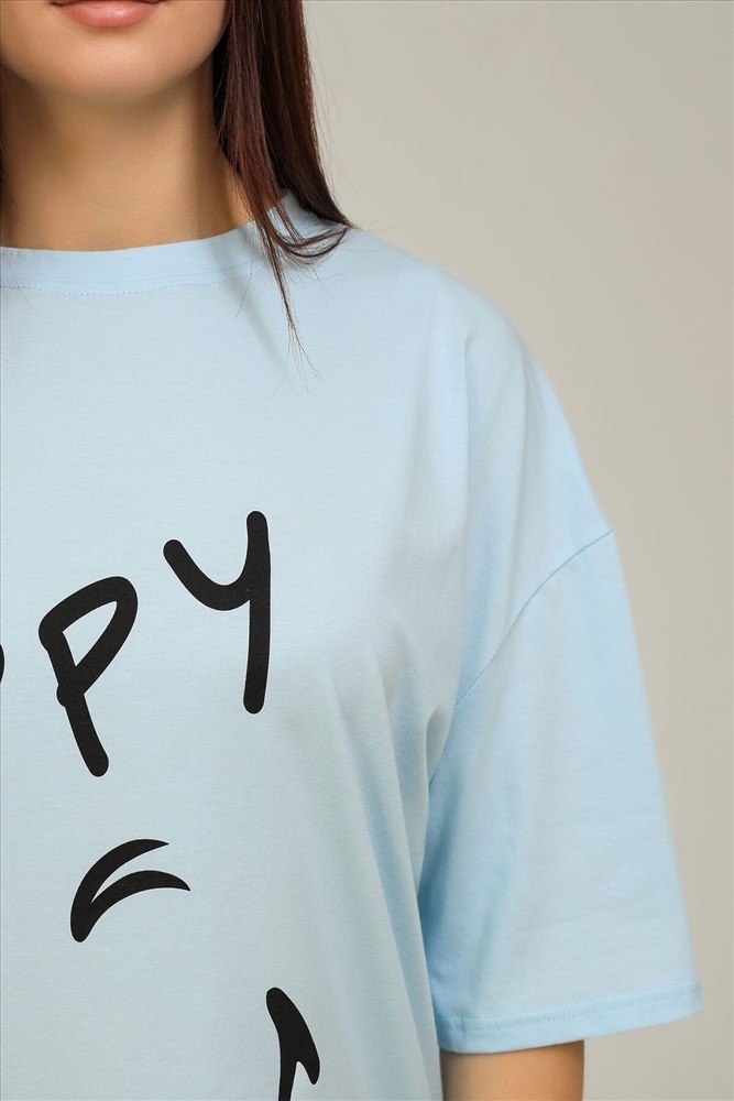 ID товара: 906416 Состав: 100% Хлопок Сезон: Весна/Лето Длина: Средняя Фасон: Прямой Рукав: 1/2 Вырез горловины: Округлый Рисунок: Надпись Основная ткань: Хлопок Стиль: Повседневный Вид ткани: Кулирка Страна бренда: Россия Страна производства: Россия Удлиненная женская футболка длинной до середины бедра представлена в 5 расцветках - яркие жёлтый, голубой и розовый цвета выделят Вас и прекрасно подчеркнет Вашу женственность, а базовые черный и, конечно же, белый цвета не утратят своей актуальности. Модели такой длины прекрасно смотрятся с брюками-дудочками, велосипедками или облегающими джинсами. В прохладную погоду хорошо будет смотреться в паре с утепленной жилеткой или курткой. На модели черного цвета нанесена печать глитером, который сверкает на солнце как алмазы, на остальных цветах печать в черном цвете, которая прекрасно контрастирует со светлыми тонами изделия. Модель выполнена из хлопка высшего качества плотность хлопка 170гр/м2. Это качество ткани люксовых изделий. Размер на модели - 48, Комментарии к товару