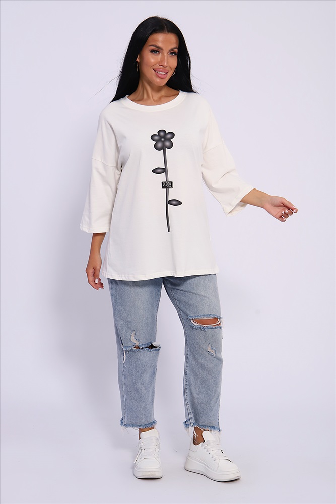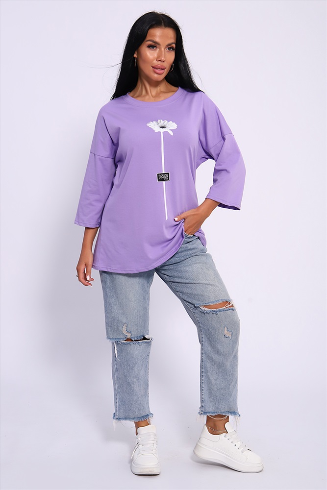 Стиль: повседневный Женская футболка длиной до середины бедра комфортная посадка круглый вырез горловины. Модель представлена в широкой цветовой гамме, Классическая футболка средней длинны прекрасно гармонирует со многими вещами гардероба, Ткань для этой модели выполнена из хлопка высшего качества. Размер на модели 50, Параметры 92-66-97,5; рост 165см.