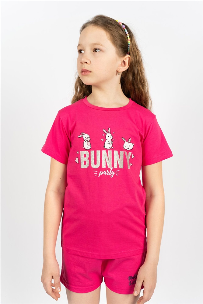 ID товара: 885454 Состав: 100% Хлопок Сезон: Весна/Лето Длина: Средняя Фасон: Прямой Рукав: Короткие Вырез горловины: Округлый Рисунок: Надпись Основная ткань: Хлопок | Кулирка Стиль: Повседневный Страна бренда: Россия Страна производства: Россия Розовая футболка с милыми зайчиками из коллекции для девочек выполнена из мягкого трикотажа. Футболку можно носить в повседневных, спортивных и домашних образах. Благодаря материалу и крою в ней будет удобно на протяжении всего дня. Для создания нового образа рекомендуем выбрать к футболке джинсы, трикотажные шорты или комбинезон. Горловина круглая, обработана воротником из кулирки. Низ изделия и рукавов обработан швом в подгибку. На полочке принт шелкография с глиттером. Комментарии к товару