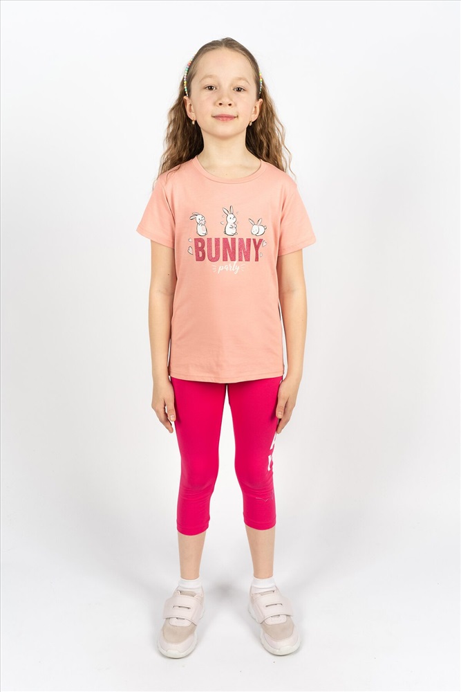 ID товара: 885455 Состав: 100% Хлопок Сезон: Весна/Лето Длина: Средняя Фасон: Прямой Рукав: Короткие Вырез горловины: Округлый Рисунок: Фантазийный Основная ткань: Хлопок | Кулирка Стиль: Повседневный Страна бренда: Россия Страна производства: Россия Розовая футболка с милыми зайчиками из коллекции для девочек выполнена из мягкого трикотажа. Футболку можно носить в повседневных, спортивных и домашних образах. Благодаря материалу и крою в ней будет удобно на протяжении всего дня. Для создания нового образа рекомендуем выбрать к футболке джинсы, трикотажные шорты или комбинезон. Горловина круглая, обработана воротником из кулирки. Низ изделия и рукавов обработан швом в подгибку. На полочке принт шелкография с глиттером. Комментарии к товару