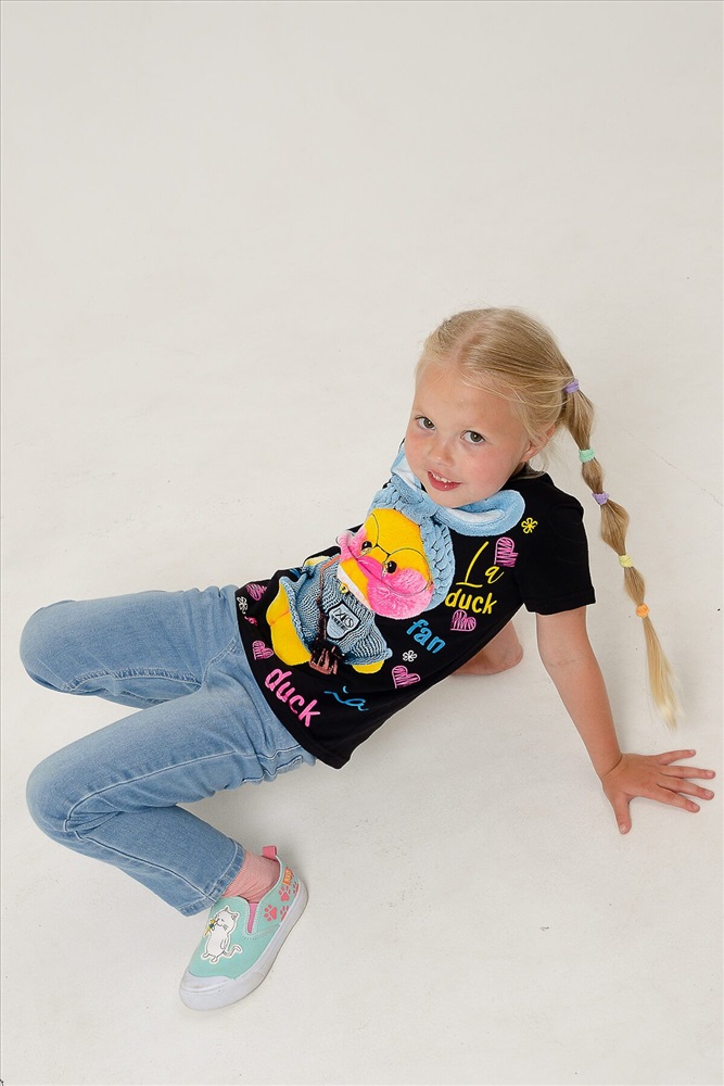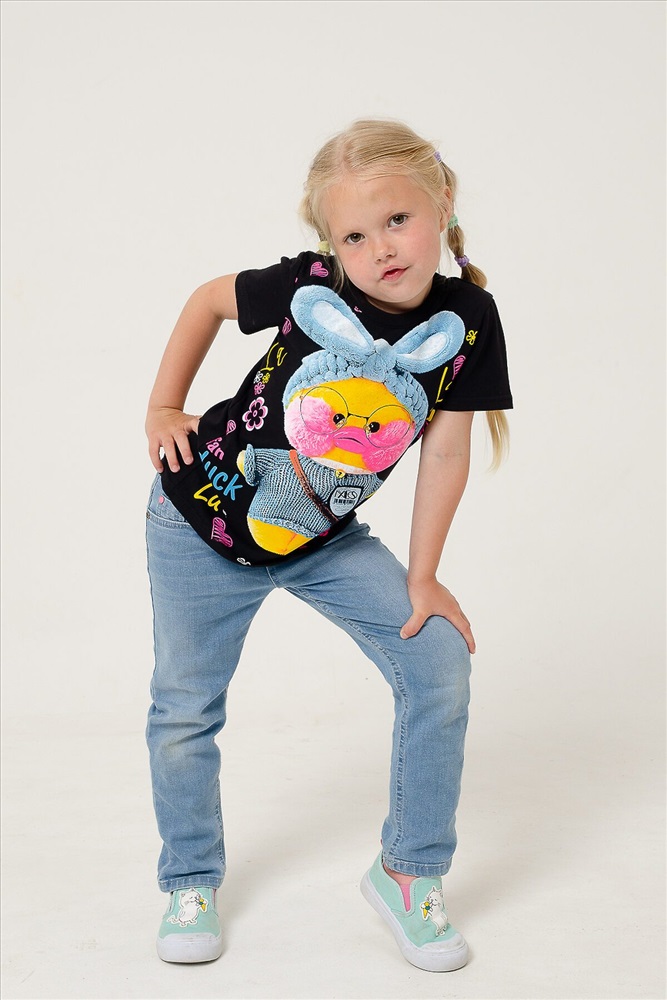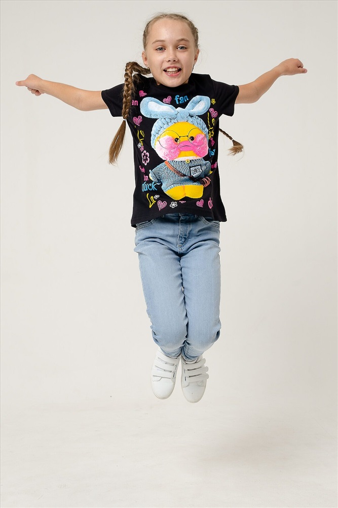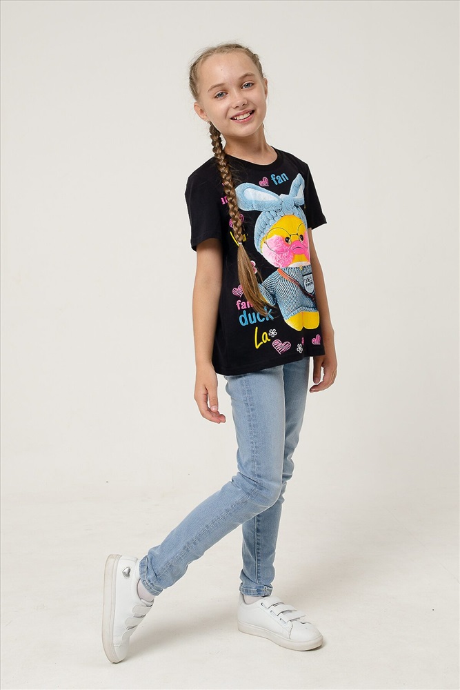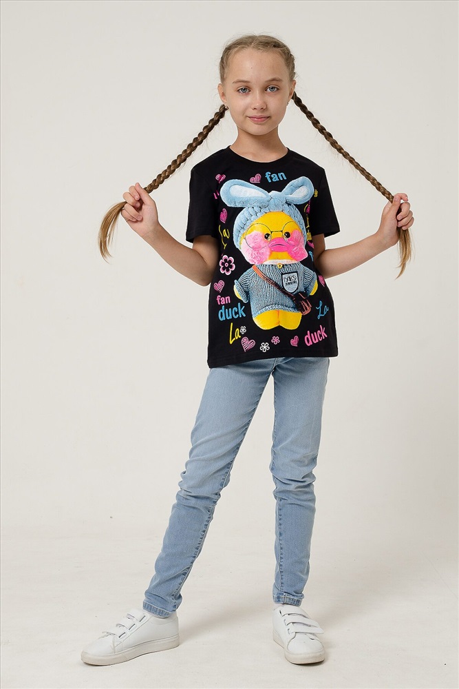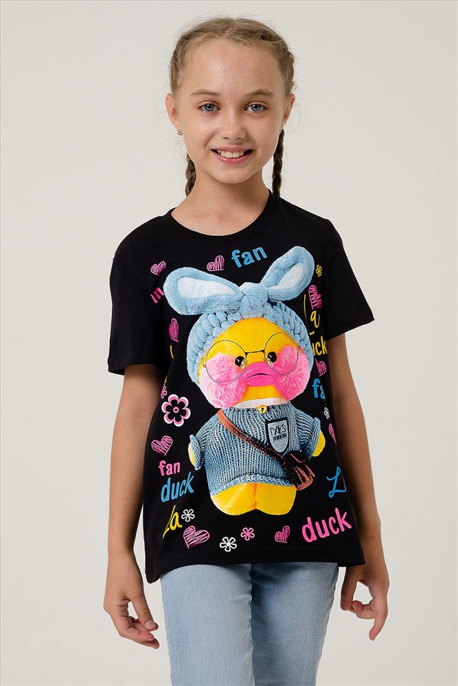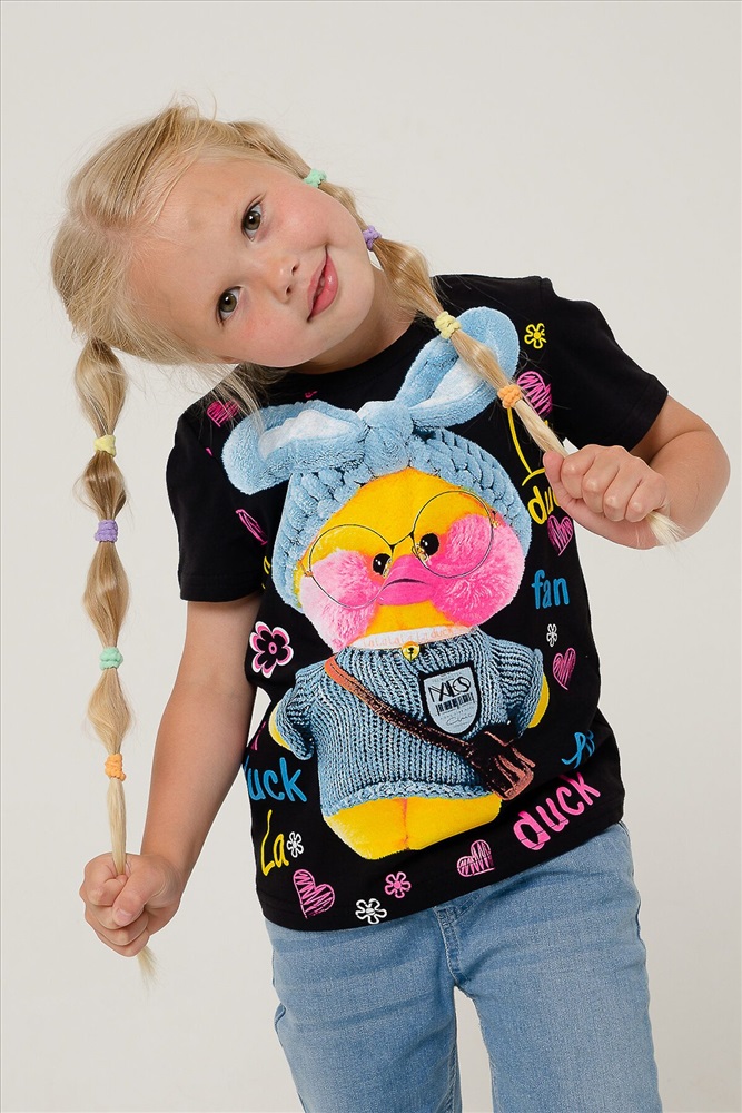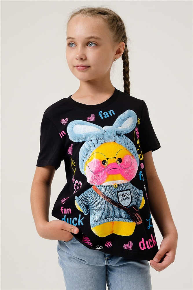 Страна производства: Россия Детская футболка с очаровательным принтом. Круглый вырез горловины, втачной свободный рукав. В продаже есть аналогичная женская футболка 8257