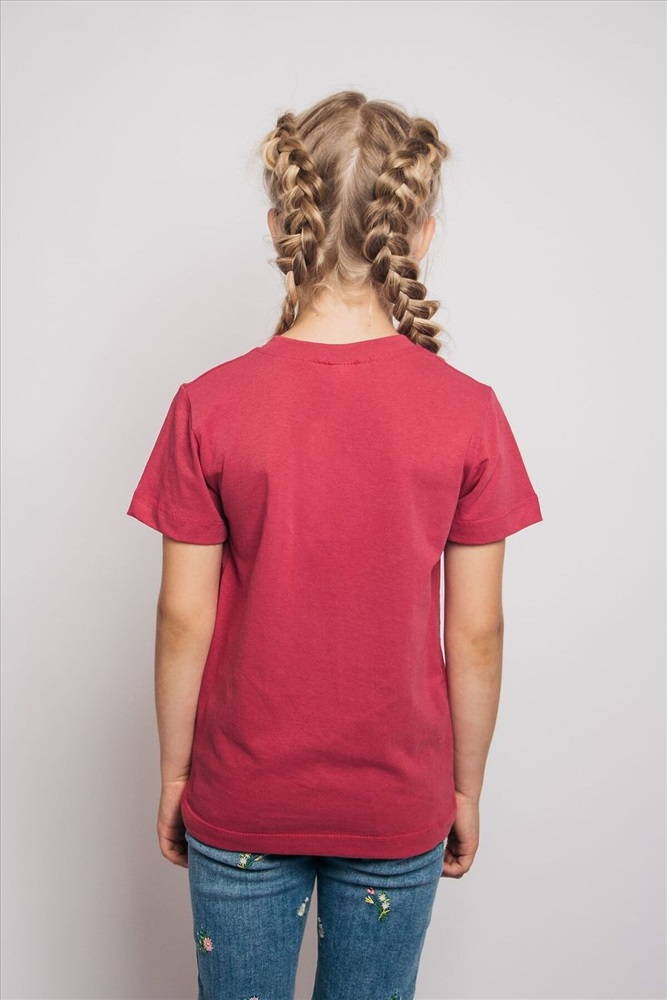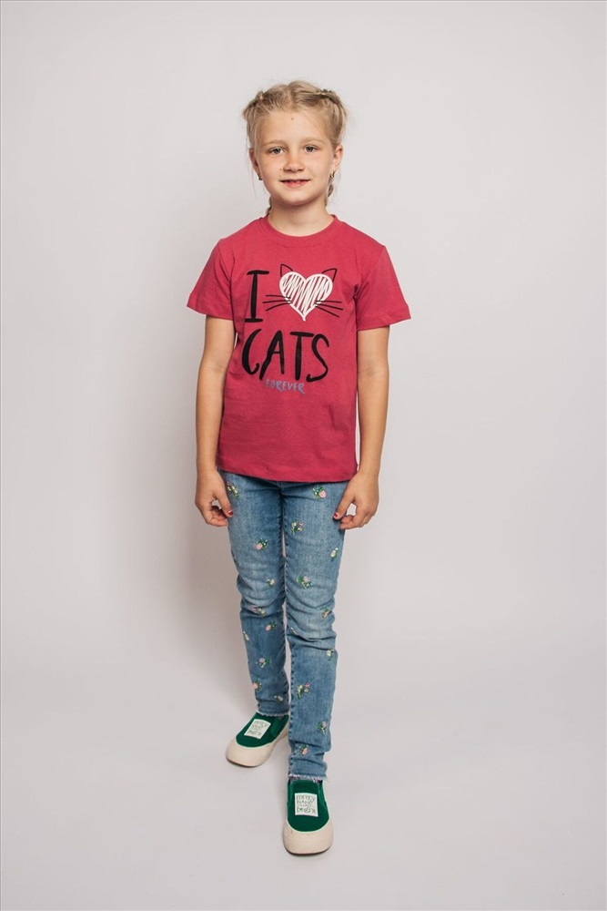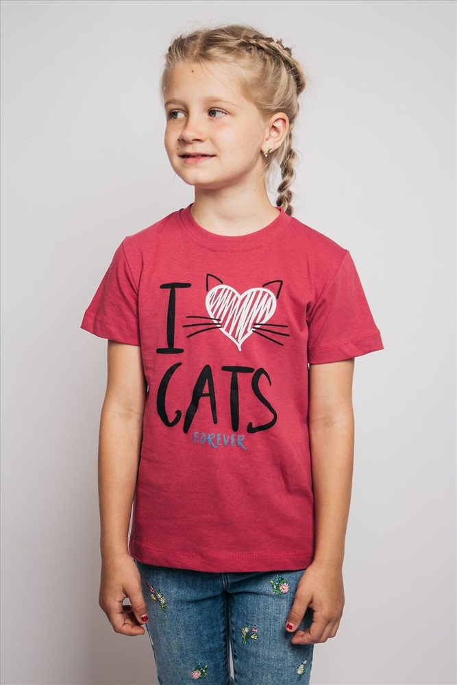 Страна производства: Россия Футболка для девочки прямого силуэта с втачным коротким рукавом. Горловина круглая, обработана воротником из кулирки. Низ изделия и рукавов обработан швом в подгибку. На полочке принт шелкография.