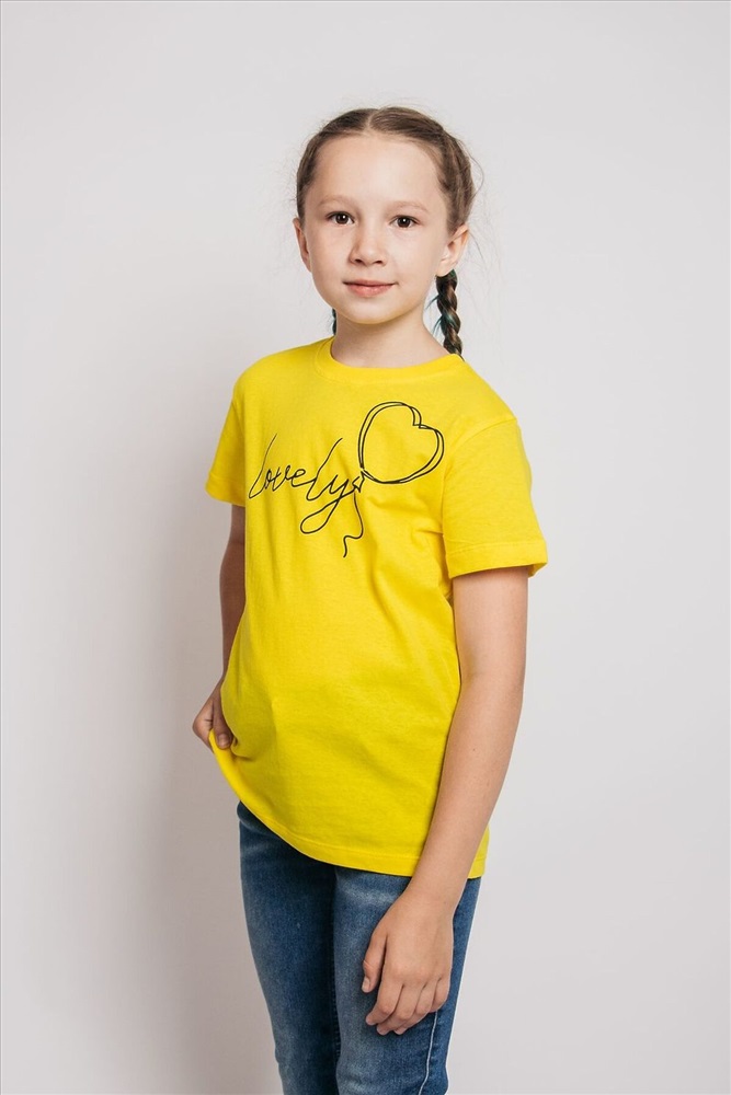 Страна производства: Россия Футболка для девочки прямого силуэта с втачным коротким рукавом. Горловина круглая, обработана воротником из кулирки. Низ изделия и рукавов обработан швом в подгибку. На полочке принт шелкография.