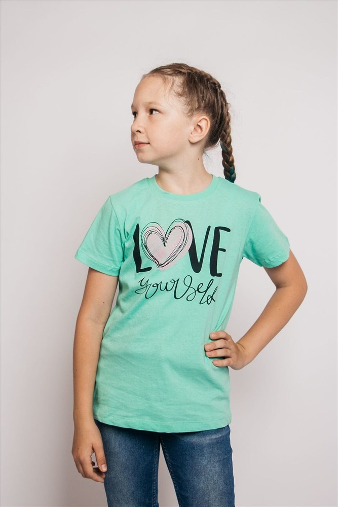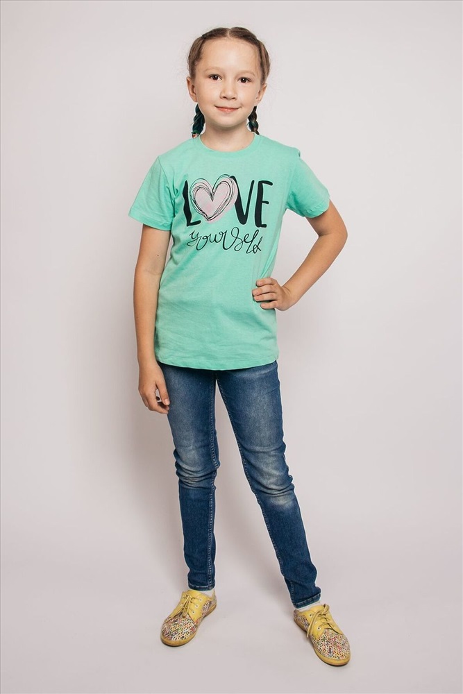 ID товара: 926714 Состав: 100% Хлопок Сезон: Весна/Лето Длина: Средняя Фасон: Прямой Рукав: короткие Вырез горловины: Округлый Рисунок: Надпись Декоративные элементы: Печатный принт Основная ткань: Хлопок Стиль: повседневный Вид ткани: Кулирка Страна бренда: Россия Страна производства: Россия Футболка для девочки прямого силуэта с втачным коротким рукавом. Горловина круглая, обработана воротником из кулирки. Низ изделия и рукавов обработан швом в подгибку. На полочке принт шелкография. Комментарии к товару