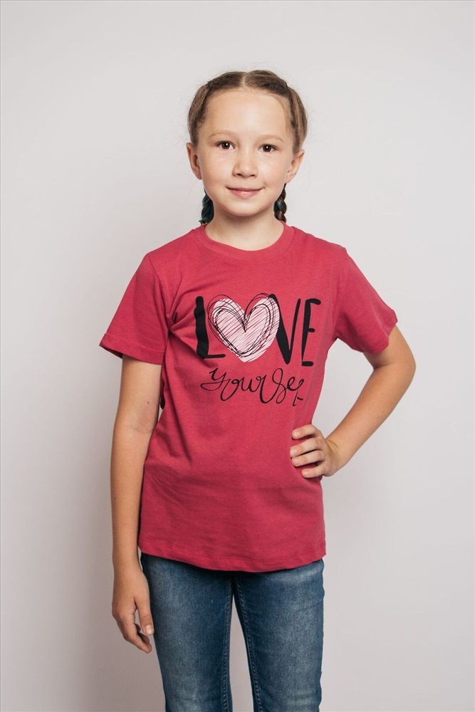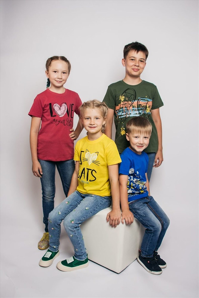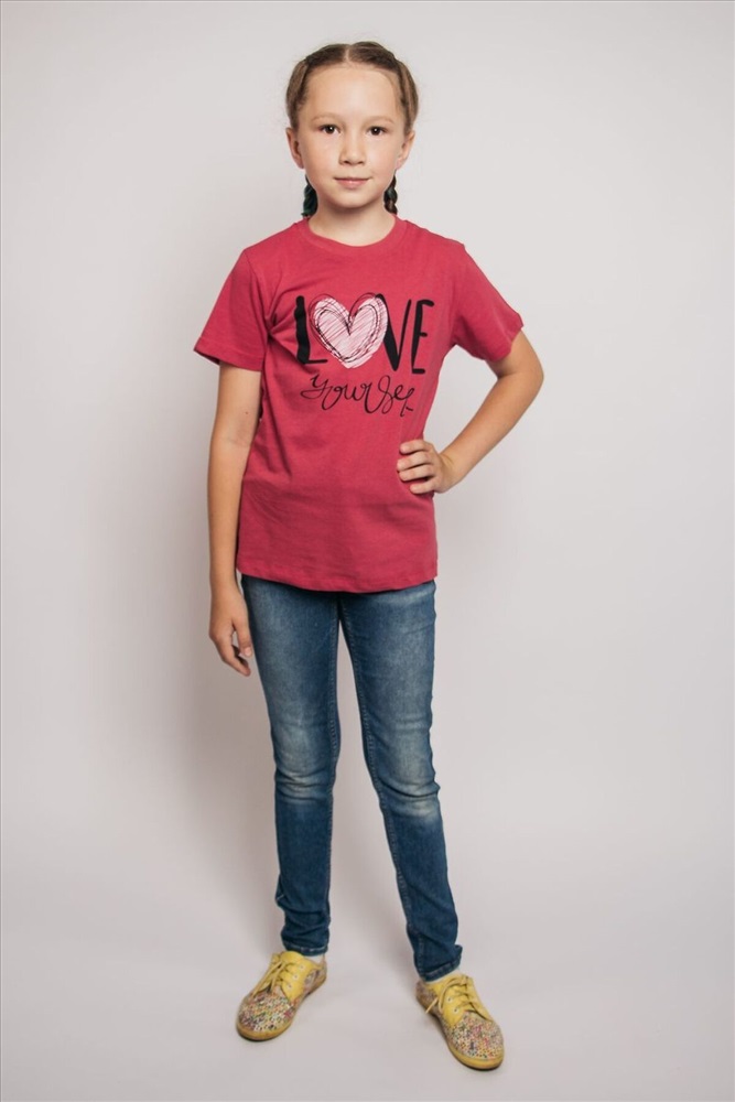 Страна производства: Россия Футболка для девочки прямого силуэта с втачным коротким рукавом. Горловина круглая, обработана воротником из кулирки. Низ изделия и рукавов обработан швом в подгибку. На полочке принт шелкография.