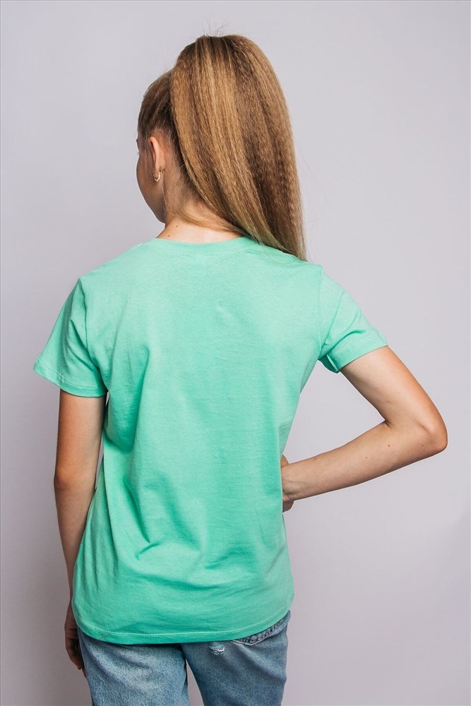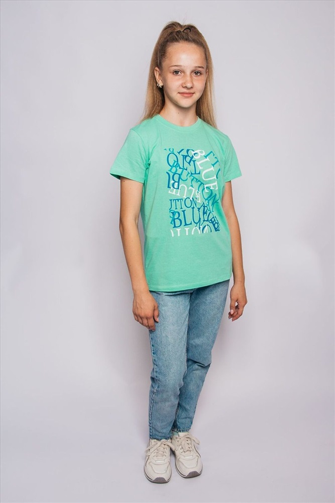 Страна производства: Россия Футболка для девочки прямого силуэта с втачным коротким рукавом. Горловина круглая, обработана воротником из кулирки. Низ изделия и рукавов обработан швом в подгибку. На полочке принт шелкография.