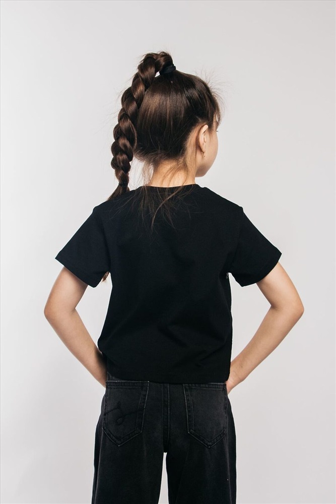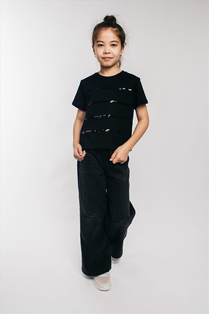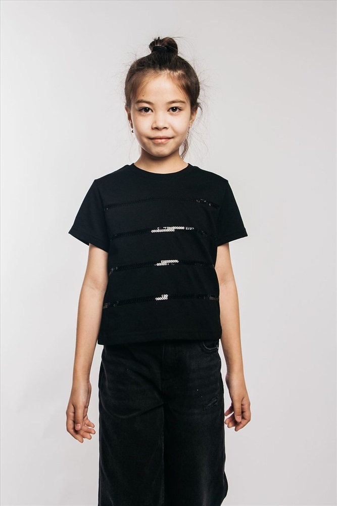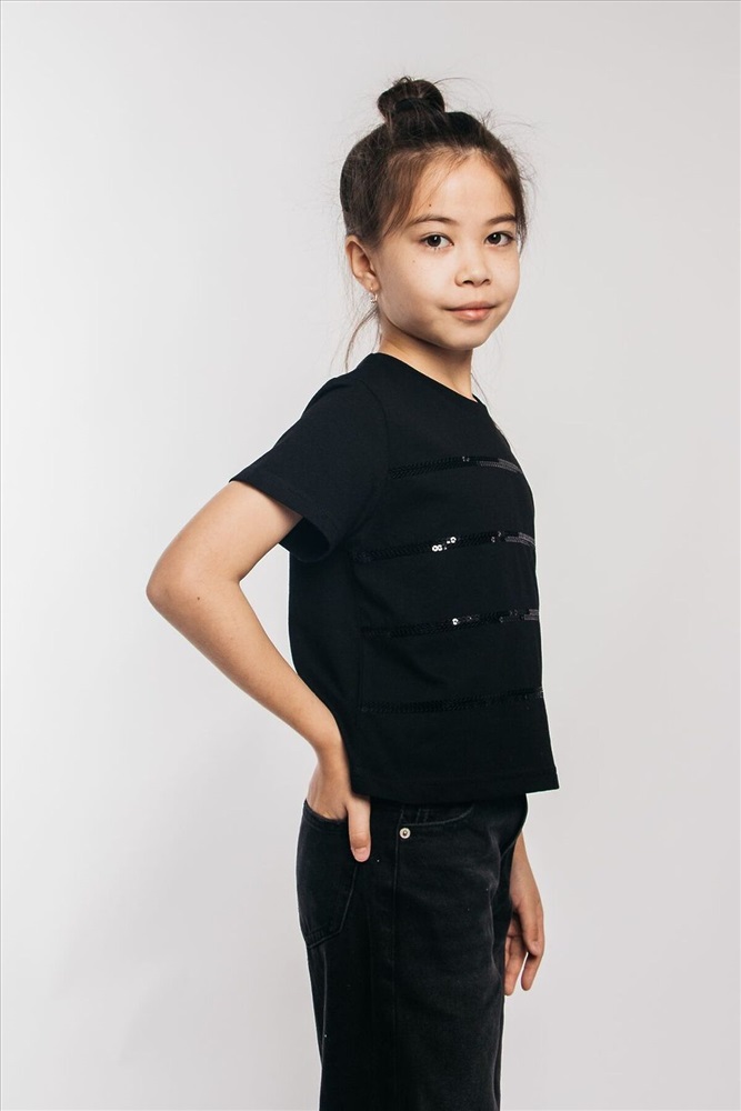 ID товара: 942103 Состав: 100% Хлопок Сезон: Демисезон Длина: Средняя Фасон: Прямой Рукав: короткие Вырез горловины: Округлый Рисунок: Полоски Декоративные элементы: Принт Основная ткань: Хлопок Стиль: повседневный Вид ткани: Кулирка Страна бренда: Россия Страна производства: Россия Футболка для девочки выполнена в черном цвете, что делает ее универсальной и практичной. Черная футболка это классика, которая всегда в моде. Она идеально подходит как для школы, так и для домашнего использования. Укороченная футболка станет любимой вещью вашенй девочки. Модные решения бренда LetsGo всегда учитывают последние тенденции, поэтому эта футболка с пайетками будет выглядеть свежо и актуально. Она может быть использована как домашняя или нарядная. Широкий силуэт обеспечивает удобство и свободу движений. Футболка с размерной линейкой со 134 по 164 рост. Изготовленная из хлопка, эта футболка обеспечивает максимальный комфорт при носке. Оригинальная вышивка пайетками делает эту футболку особенной. Подчеркните стиль вашего ребенка с помощью этой уникальной футболки. Если вы ищете стильную, комфортную и практичную одежду эта черная футболка будет отличным выбором! Тип полотна - кулирная гладь. Дизайн полотна - однотонный. Посадка - свободная. Силуэт - прямой. Длина - до бедра. Короткий втачной рукав. Круглый вырез горловины. Декор - пайетки. Комментарии к товару