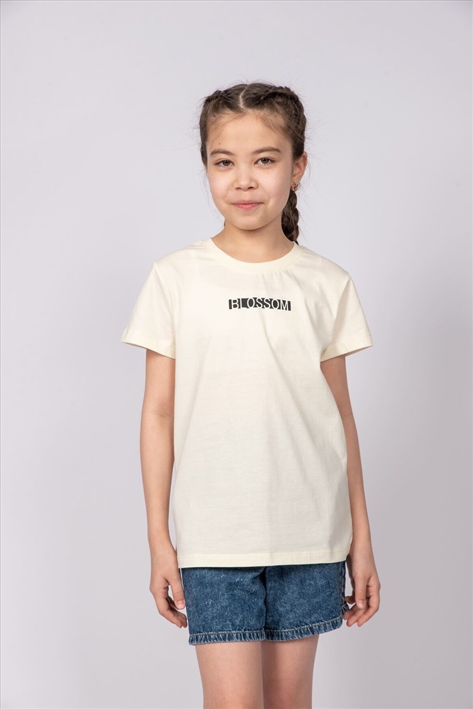 ID товара: 986773 Состав: 100% Хлопок Сезон: Весна/Лето Длина: Средняя Фасон: Прямой Рукав: короткие Вырез горловины: Округлый Рисунок: Надпись Декоративные элементы: Принт Основная ткань: Хлопок Стиль: повседневный Вид ткани: Кулирка Страна бренда: Россия Страна производства: Россия Футболка для девочки выполненная из мягкого хлопкового трикотажа, который прост в уходе, позволяет телу дышать и комфортен в носке. Футболка прямого силуэта, с втачным коротким рукавом. Принт Шелкография. Надпись переводится как Цвети. Благодаря эластичной горловине, выполненной из рибаны, футболку удобно снимать и надевать. Материал не растягивается и не деформируется. Комментарии к товару