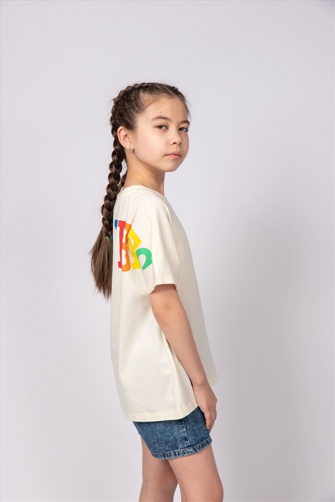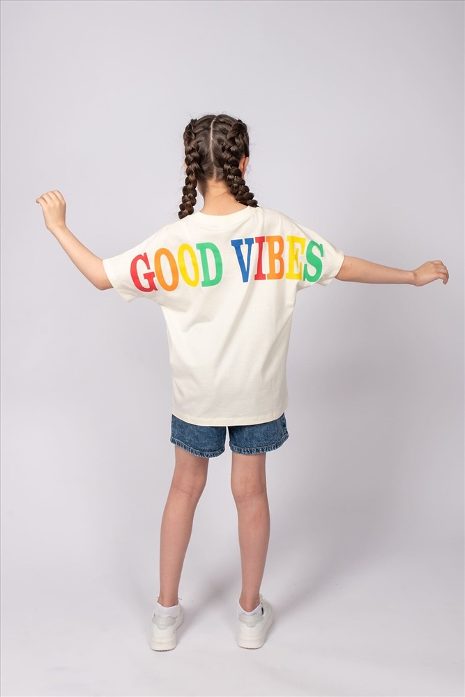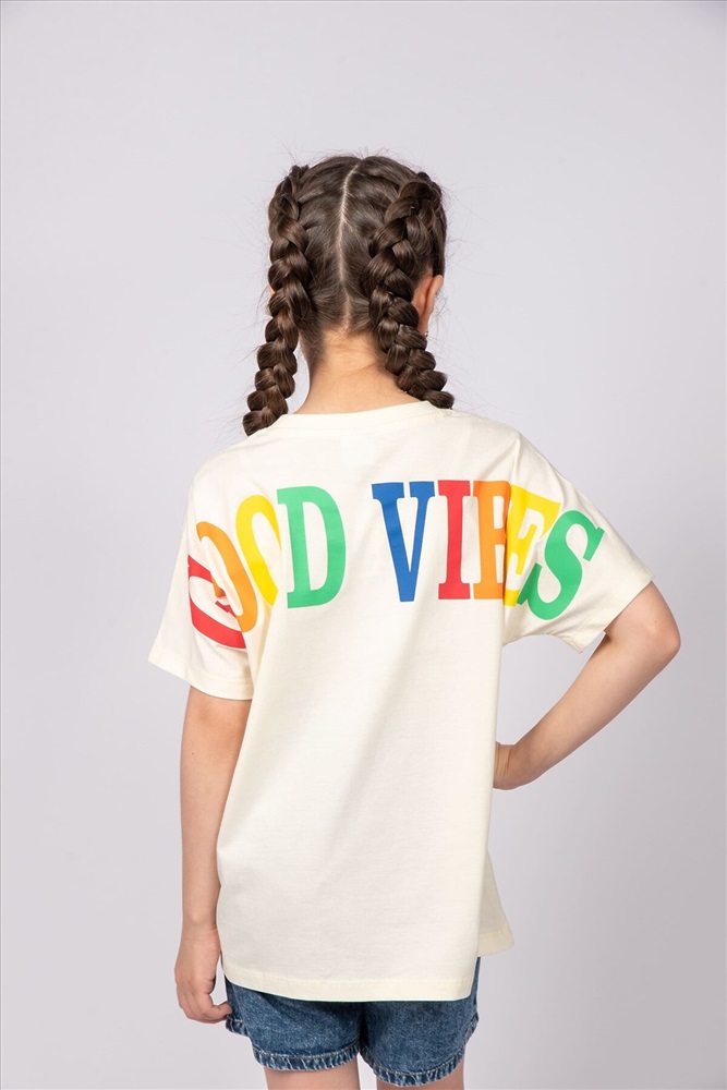 ID товара: 986768 Состав: 100% Хлопок Сезон: Весна/Лето Длина: Средняя Фасон: Свободный Рукав: короткие Вырез горловины: Округлый Рисунок: Надпись Декоративные элементы: Принт Основная ткань: Хлопок Стиль: повседневный Вид ткани: Кулирка Страна бренда: Россия Страна производства: Россия Футболка для девочки выполненная из мягкого хлопкового трикотажа, который прост в уходе, позволяет телу дышать и комфортен в носке. Футболка прямого силуэта, с цельнокроенным рукавом. Благодаря эластичной горловине, выполненной из рибаны, футболку удобно снимать и надевать. На спинке принт шелкография. Надпись переводится как Хорошее настроение. Материал не растягивается и не деформируется. Комментарии к товару
