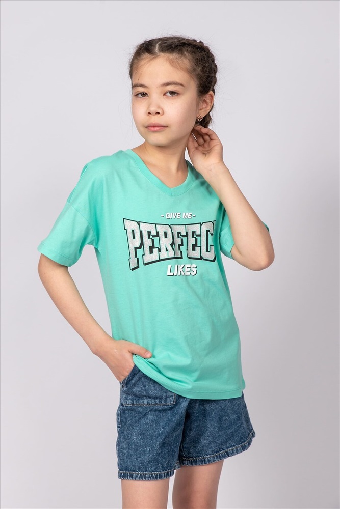 ID товара: 986762 Состав: 100% Хлопок Сезон: Весна/Лето Длина: Средняя Фасон: Свободный Рукав: короткие Вырез горловины: Округлый Рисунок: Надпись Декоративные элементы: Принт Основная ткань: Хлопок Стиль: повседневный Вид ткани: Кулирка Страна бренда: Россия Страна производства: Россия Футболка для девочки выполнена из 100% хлопка. Футболка прямого силуэта, со спущенным плечом, коротким рукавом. Горловина имеет V-вырез. На спинке принт Шелкография с глиттером. Надпись переводится как Поставь мне идеальные лайки. Материал не растягивается и не деформируется. Комментарии к товару