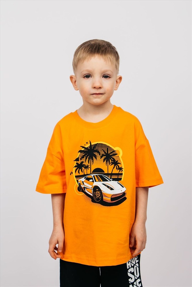 Страна производства: Россия Футболка для мальчика выполнена из 100% хлопка. Футболка свободного силуэта (оверсайз) с коротким рукавом. Благодаря эластичной горловине, выполненной из рибаны, футболку удобно снимать и надевать. На полочке принт шелкография. Материал не растягивается и не деформируется.