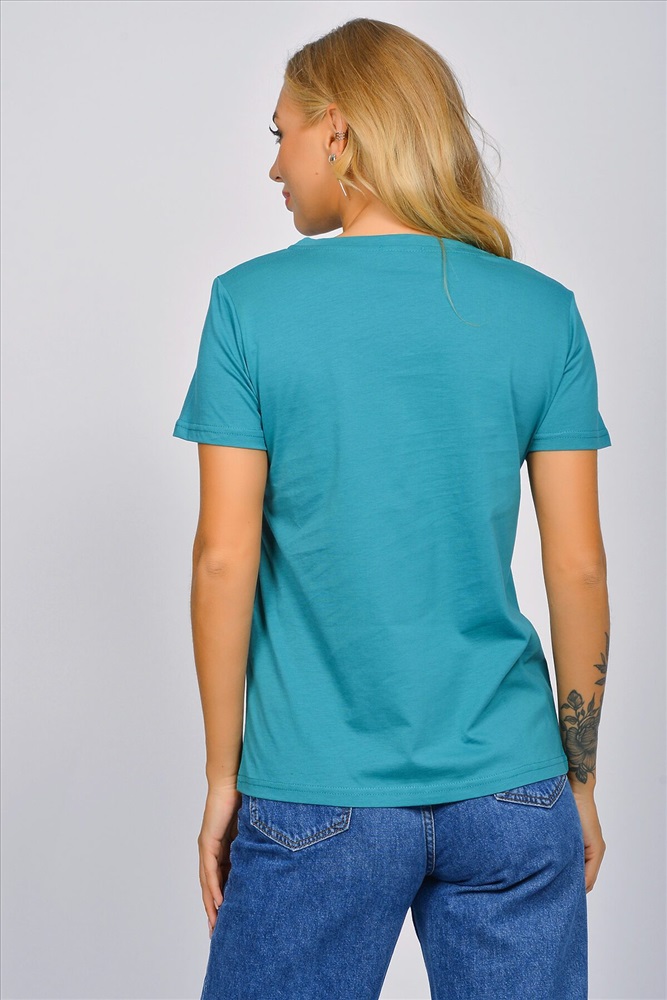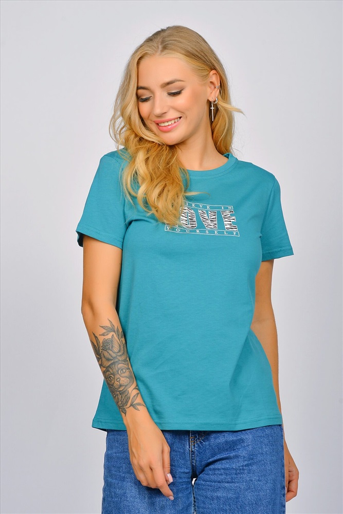ID товара: 933474 Состав: 100% Хлопок Сезон: Весна/Лето Длина: Средняя Фасон: Прямой Рукав: короткие Вырез горловины: Округлый Основная ткань: Хлопок Стиль: Повседневный Вид ткани: Кулирка Страна бренда: Россия Страна производства: Россия Футболка женская прямого силуэта с втачным коротким рукавом. Горловина круглая, обработана воротником из кулирки, в цвет изделия. Горловина спинки внутри обработана настрочной планкой из киперной ленты. Низ изделия обработан швом в подгибку. На полочке принт шелкография. Модель рассчитана на рост 164-170. Комментарии к товару