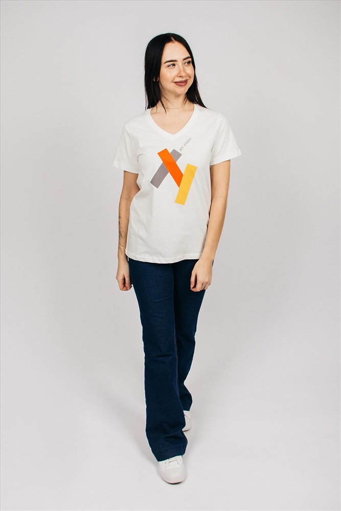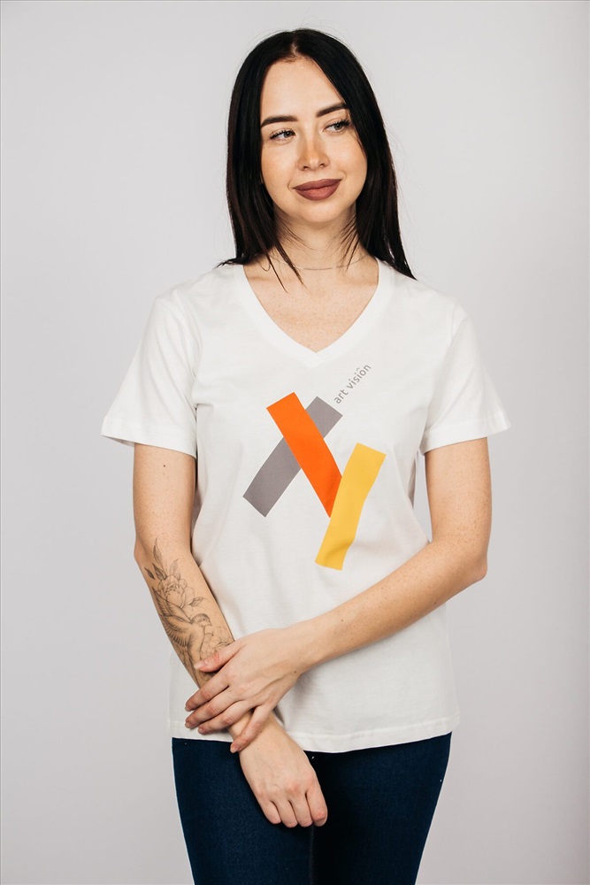 ID товара: 978617 Состав: 100% Хлопок Сезон: Весна/Лето Длина: Средняя Фасон: Прямой Рукав: короткие Вырез горловины: V-образный Рисунок: Абстракция Декоративные элементы: Принт Основная ткань: Хлопок Стиль: повседневный Вид ткани: Кулирка Страна бренда: Россия Страна производства: Россия Женская футболка с принтом - шелкография - идеальный выбор для модных женщин, которые ищут базовую одежду. Футболка классического фасона, прямого кроя, с втачным рукавом и V-образной горловиной. Футболка новой коллекции подчеркнет ваш гардероб, а также идеально подойдет для создания ярких и стильных образов. Футболку будет удобно носить навыпуск или заправлять, отлично сочетается с юбкой, брюками с джинсами, а также можно одеть под пиджак, жакет или кардиган. Футболка выполнена из мягкого хлопкового полотна. Уход за изделием: стирать футболку с вещами похожего цвета и вынимать сразу после стирки. Гладить с изнаночной стороны. После стирки футболка сохранит свой первозданный вид, горловина не вытягивается, а боковые швы не ведет. Надпись переводиться как Художественное видение. Модель рассчитана на рост 164-170см. Полотно: Кулирная гладь-пенье. Состав: 100% Хлопок. Плотность 160 гр. Комментарии к товару