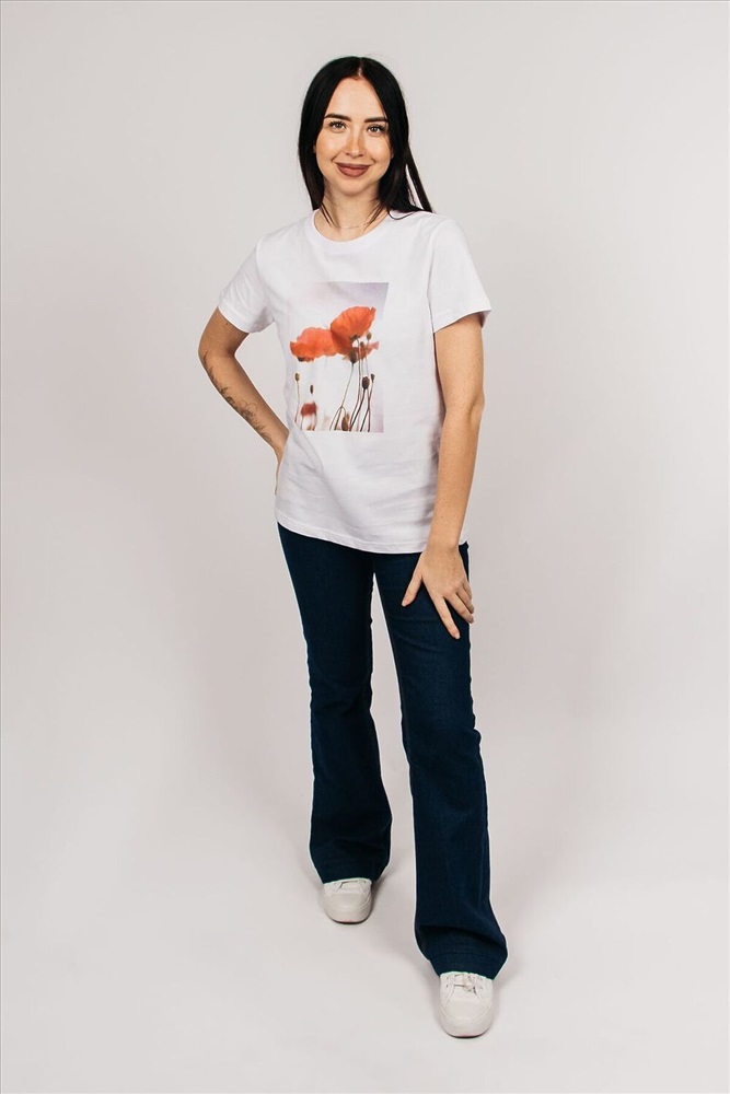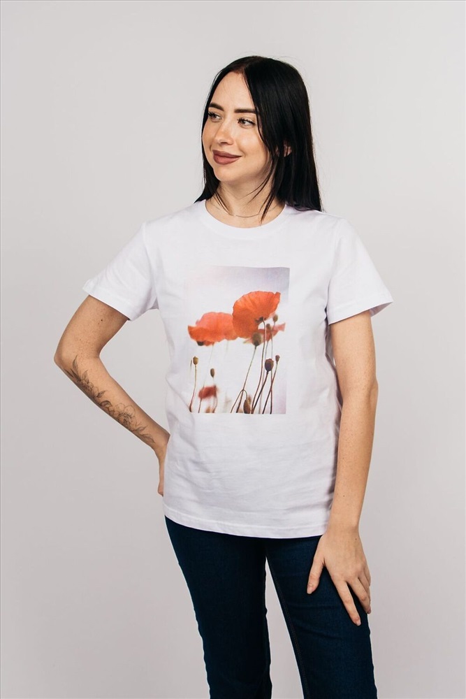 ID товара: 978596 Состав: 100% Хлопок Сезон: Весна/Лето Длина: Средняя Фасон: Прямой Рукав: короткие Вырез горловины: Округлый Рисунок: цветочный Декоративные элементы: Принт Основная ткань: Хлопок Стиль: повседневный Вид ткани: Кулирка с лайкрой пенье Страна бренда: Россия Страна производства: Россия Женская футболка с фото - принтом идеальный выбор для модных женщин, которые ищут базовую одежду. Футболка классического фасона, прямого кроя, с втачным коротким рукавом и круглой горловиной. Футболка новой коллекции подчеркнет ваш гардероб, а также идеально подойдет для создания ярких и стильных образов. Футболку будет удобно носить навыпуск или заправлять, отлично сочетается с юбкой, брюками с джинсами, а также можно одеть под пиджак, жакет или кардиган. Футболка выполнена из мягкого хлопкового полотна. Уход за изделием: стирать футболку с вещами похожего цвета и вынимать сразу после стирки. Гладить с изнаночной стороны. После стирки футболка сохранит свой первозданный вид, горловина не вытягивается, а боковые швы не ведет. Модель рассчитана на рост 164-170см. Полотно: Кулирная гладь-пенье. Состав: 100% Хлопок. Плотность 160 гр. Комментарии к товару