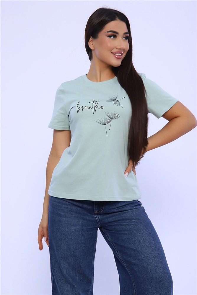 ID товара: 955539 Состав: 100% Хлопок Сезон: Весна/Лето Длина: Средняя Фасон: Прямой Рукав: короткие Вырез горловины: Округлый Основная ткань: Хлопок Стиль: Повседневный Вид ткани: Кулирка Страна бренда: Россия Страна производства: Россия Женская футболка с коротким рукавом полуприлегающего силуэта, с округлой горловиной, на полочке неброский принт. Комментарии к товару