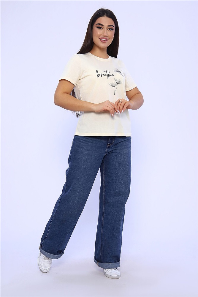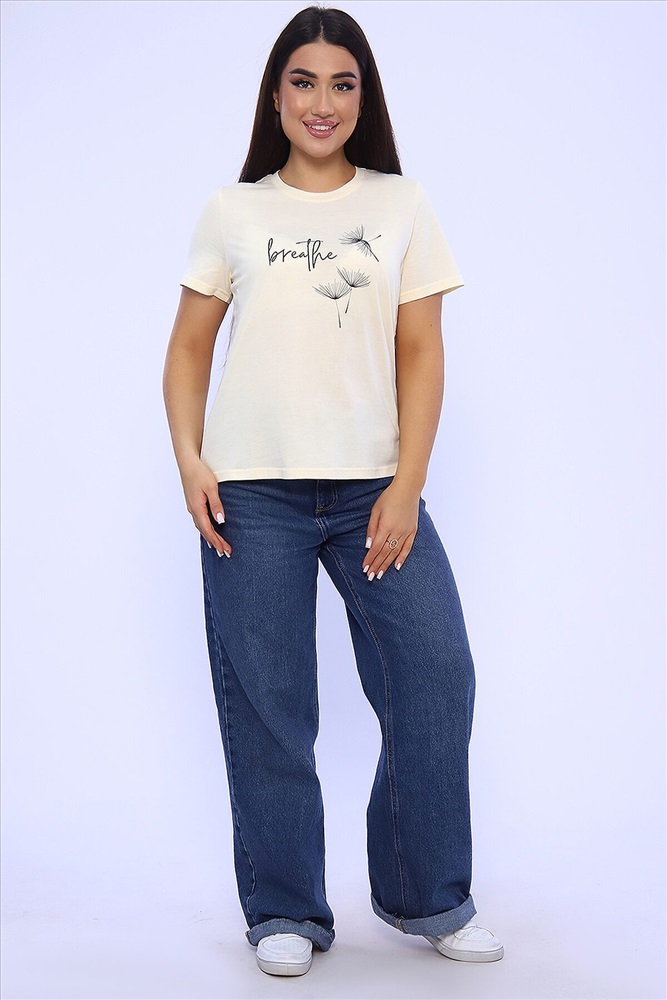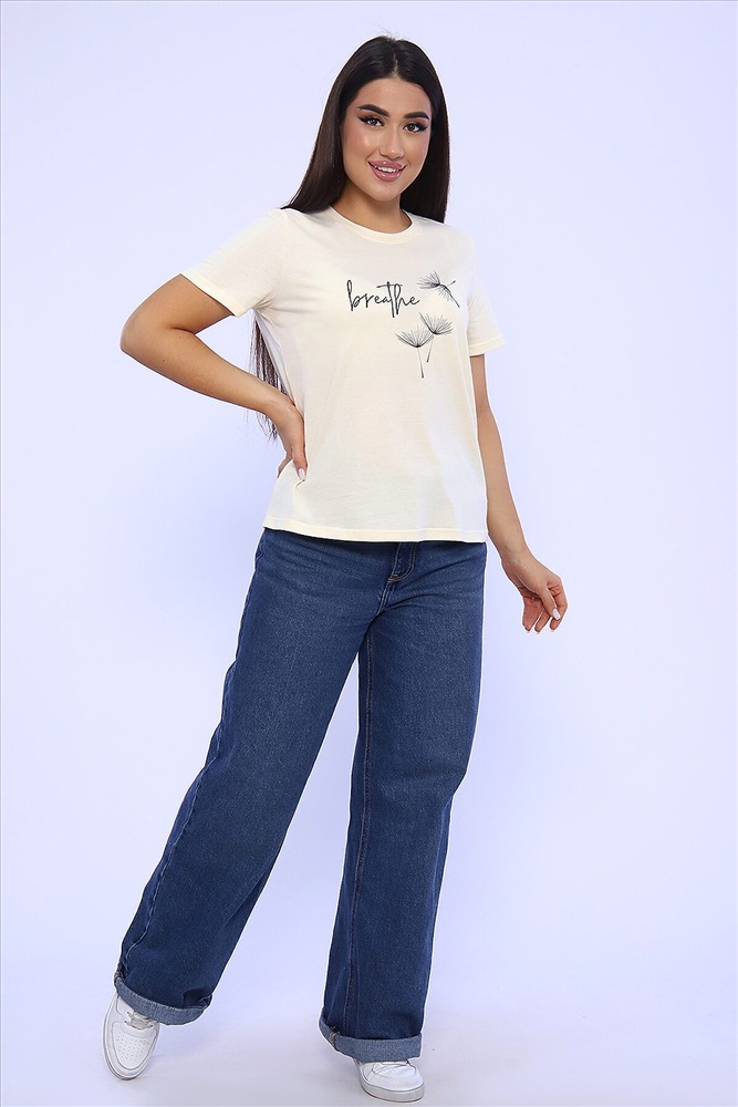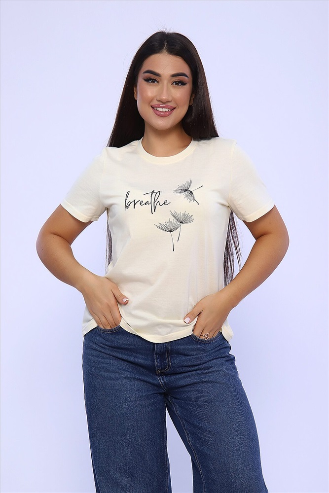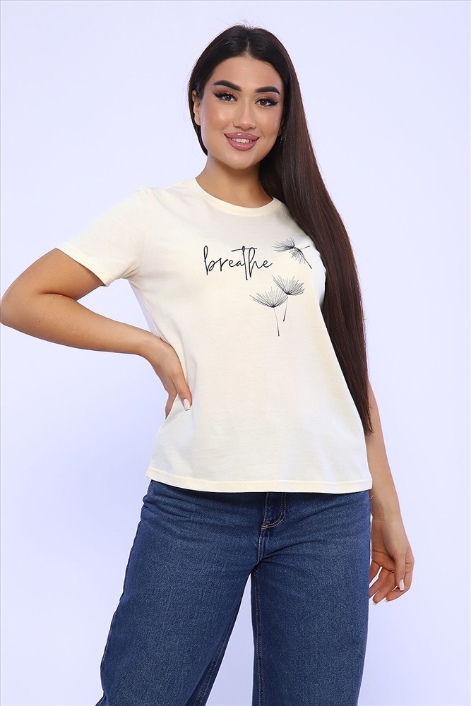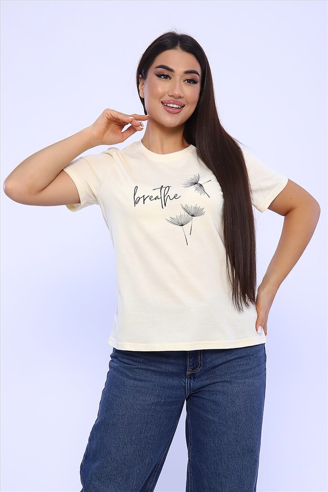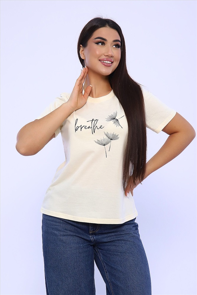 ID товара: 955540 Состав: 100% Хлопок Сезон: Весна/Лето Длина: Средняя Фасон: Прямой Рукав: короткие Вырез горловины: Округлый Основная ткань: Хлопок Стиль: Повседневный Вид ткани: Кулирка Страна бренда: Россия Страна производства: Россия Женская футболка с коротким рукавом полуприлегающего силуэта, с округлой горловиной, на полочке неброский принт. Комментарии к товару
