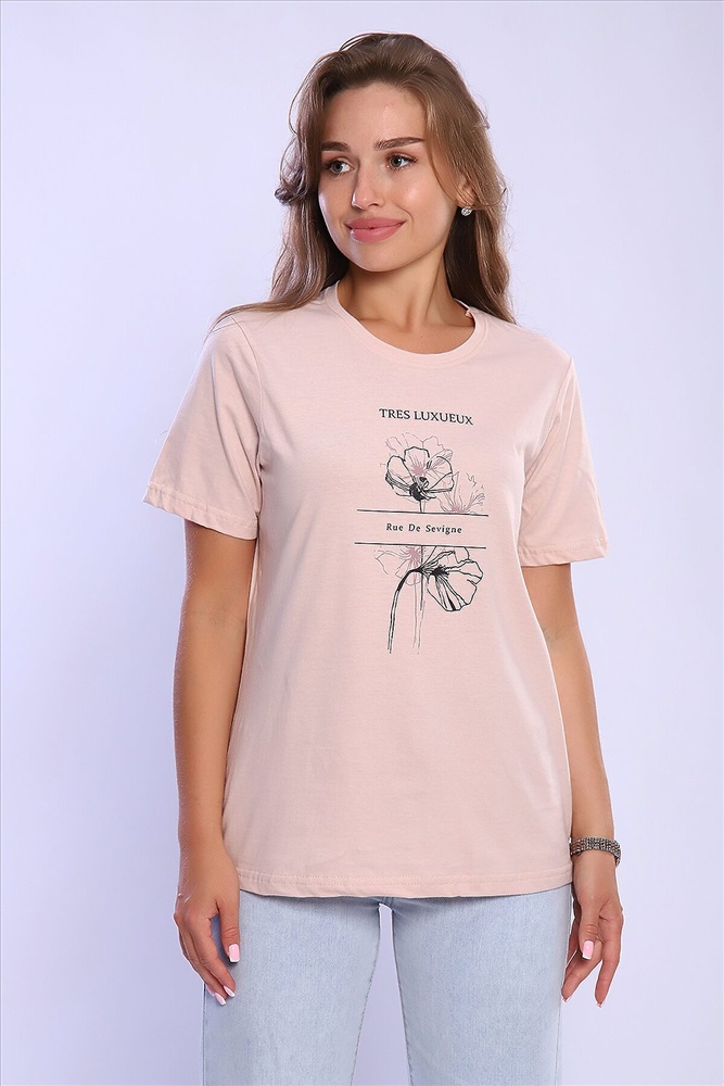 ID товара: 926799 Состав: 100% Хлопок Сезон: Весна/Лето Длина: Средняя Фасон: Полуприталенный Рукав: короткие Вырез горловины: Округлый Рисунок: Надпись Основная ткань: Хлопок Стиль: Повседневный Вид ткани: Кулирка Страна бренда: Россия Страна производства: Россия Женская футболка с круглым вырезом горловины и короткими рукавами. Такая модель подойдет абсолютно всем и станет необходимой вещью в вашем гардеробе. Комментарии к товару